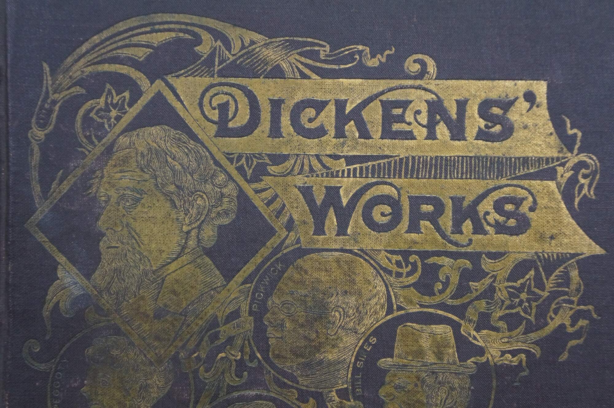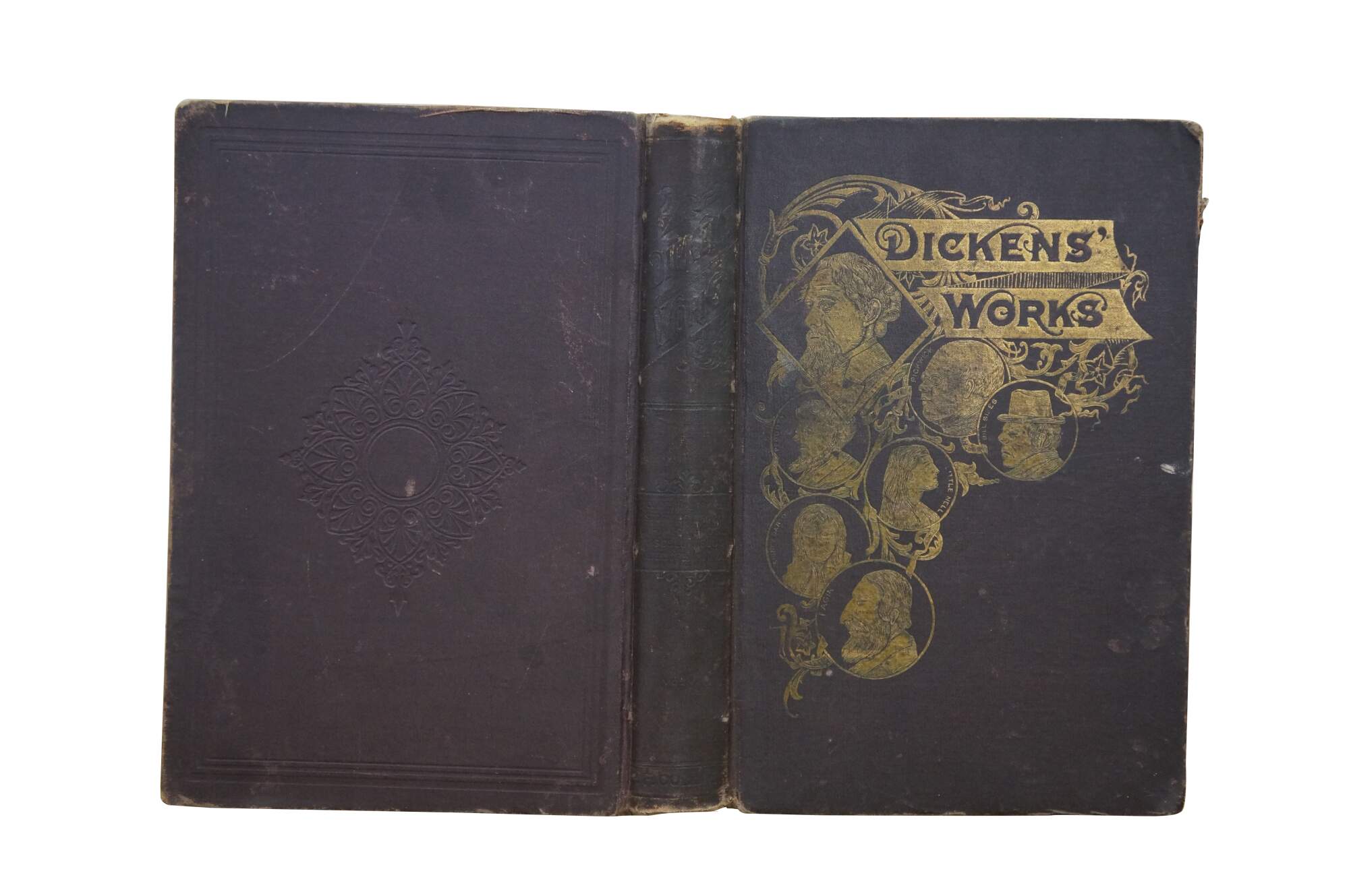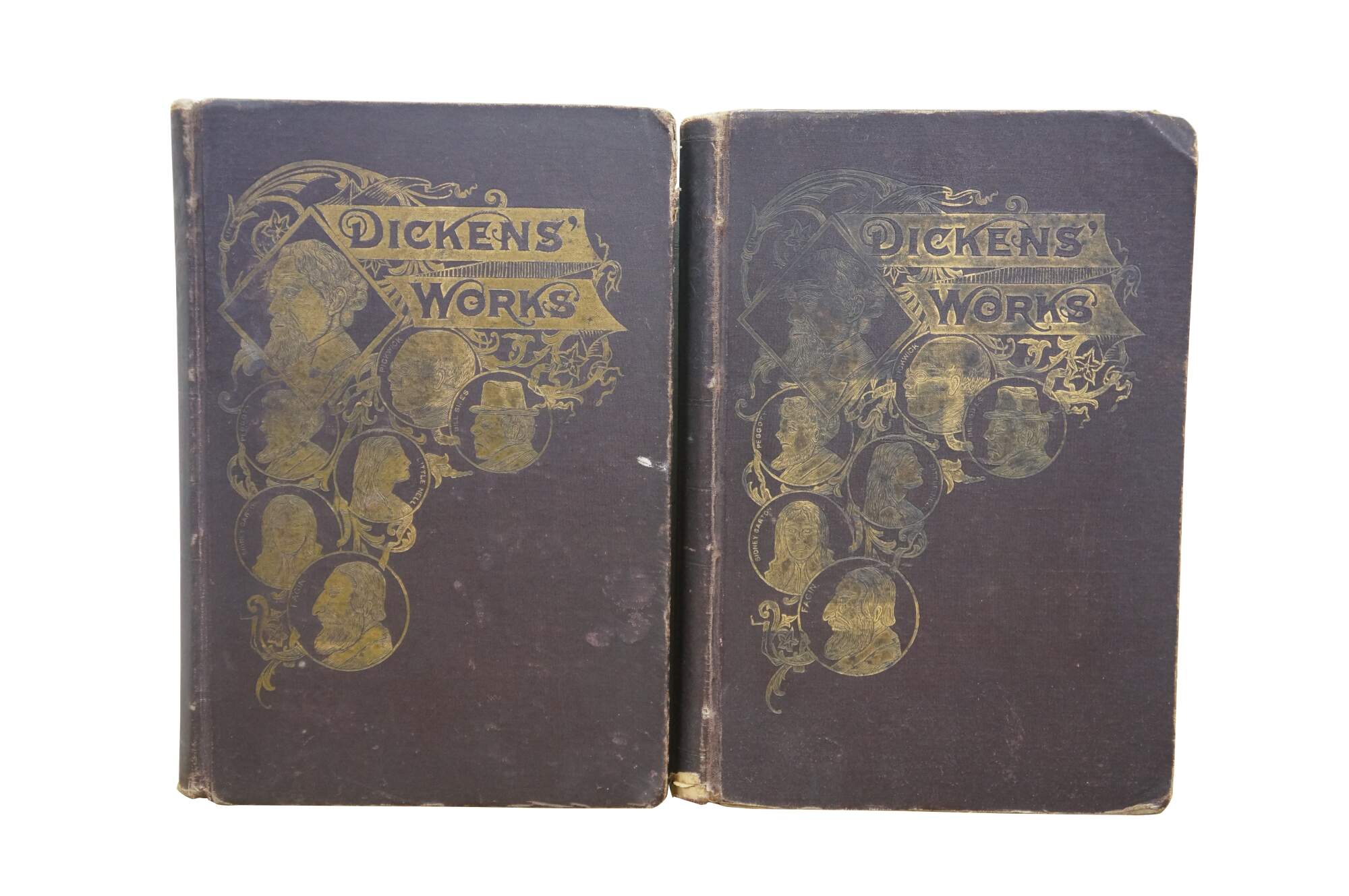 Two antique books from the Works of Charles Dickens, circa 1892.