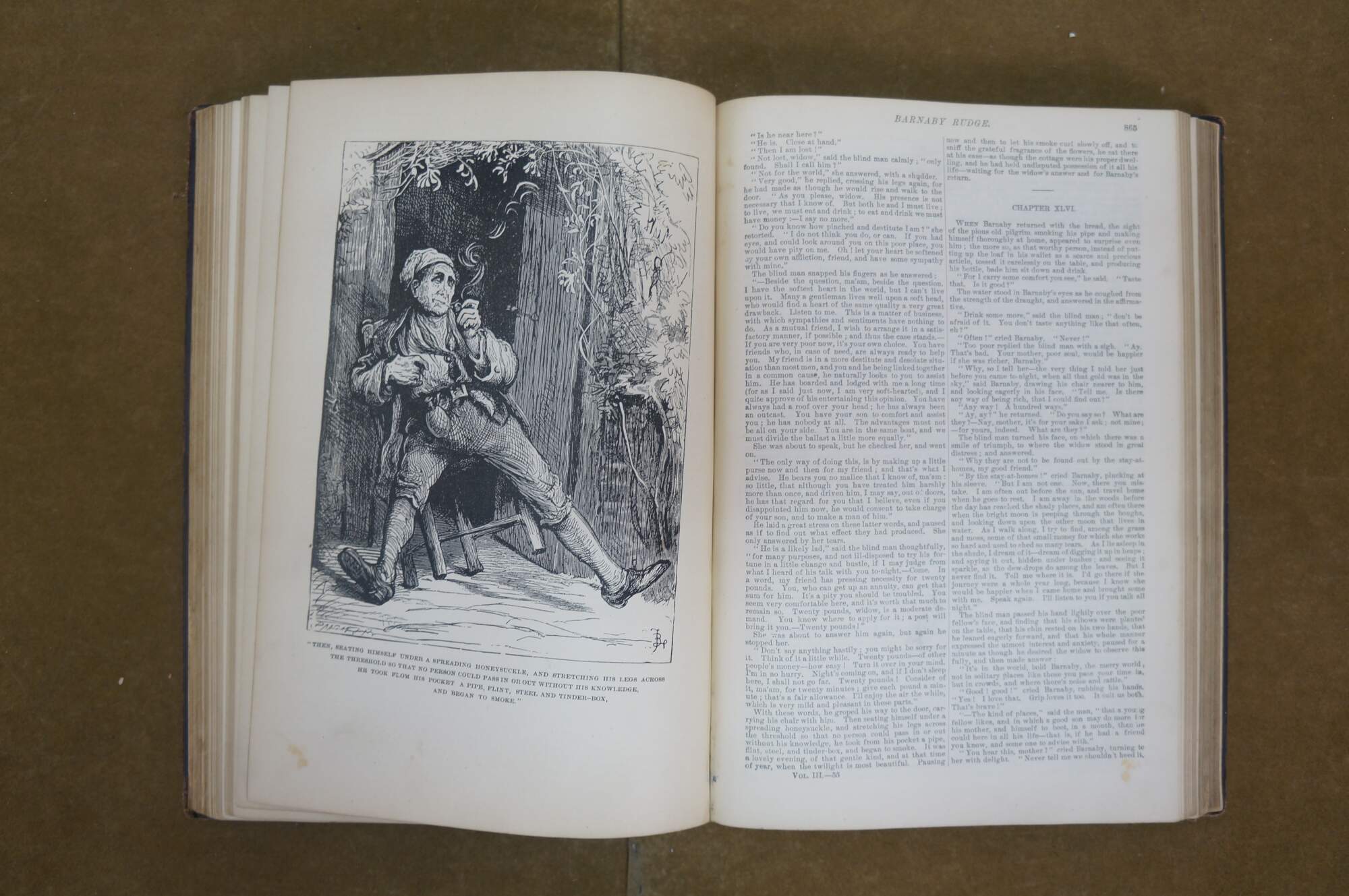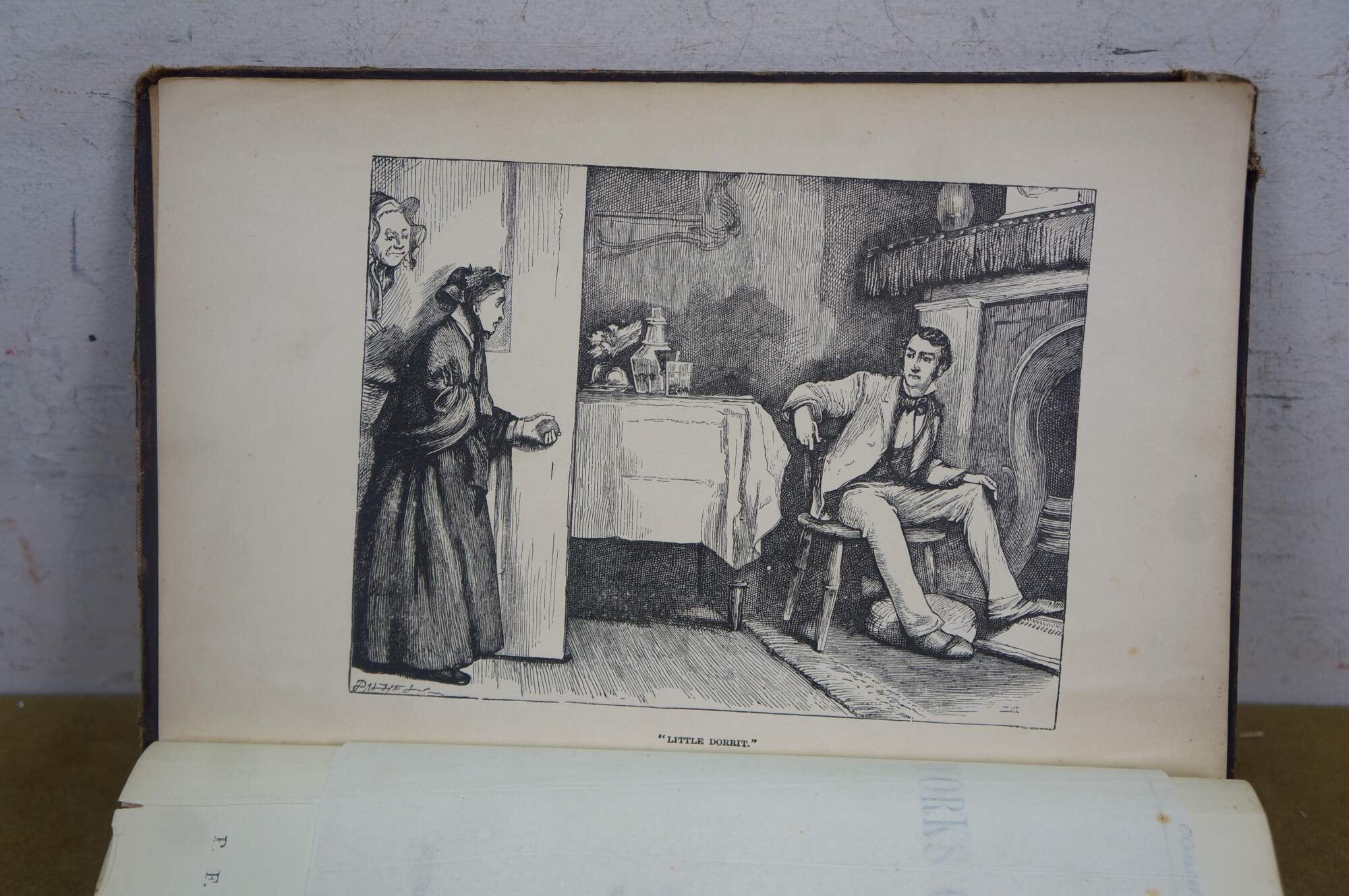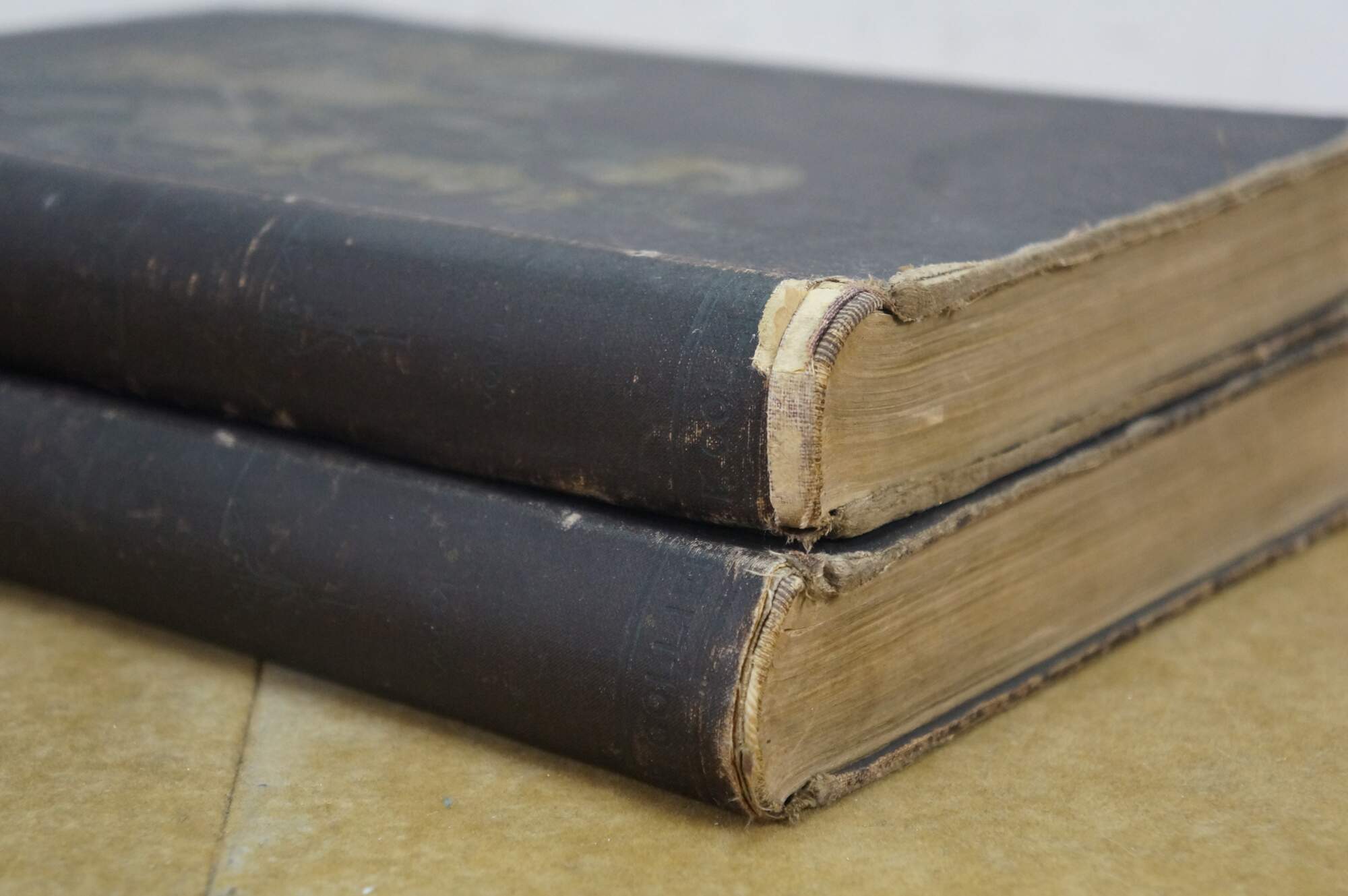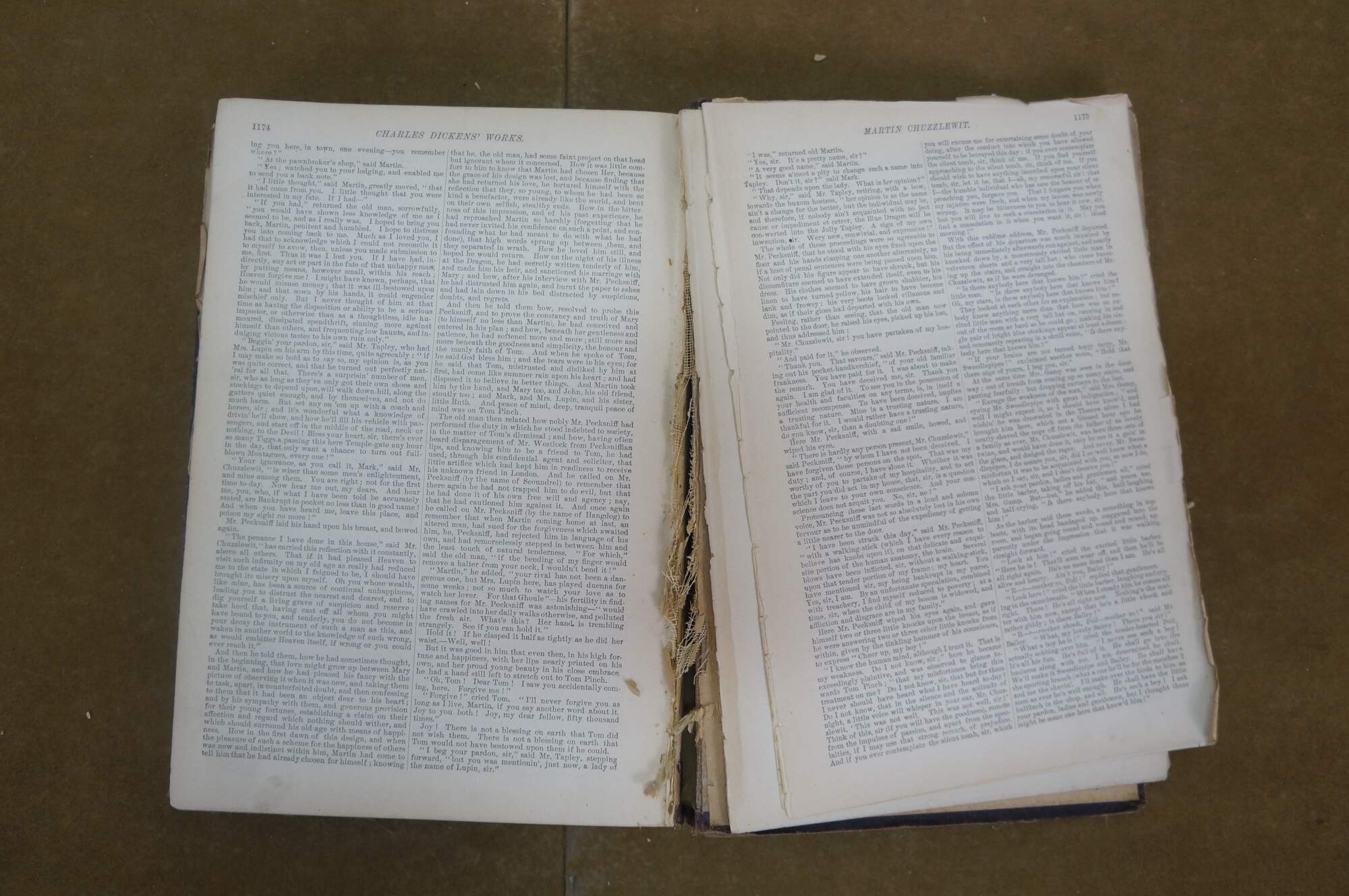 Two antique books from the Works of Charles Dickens, circa 1892.