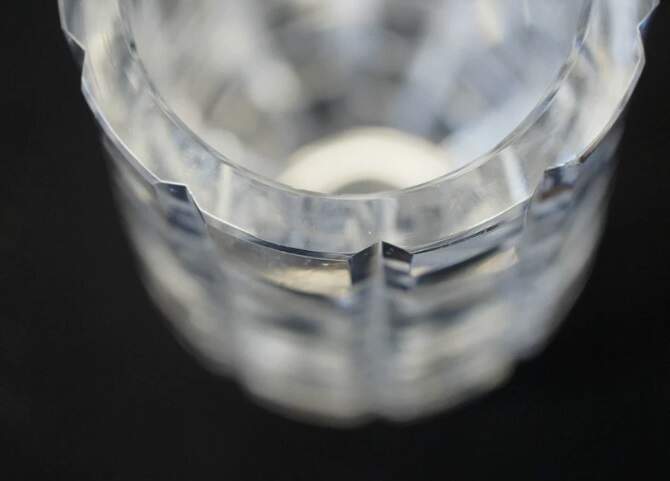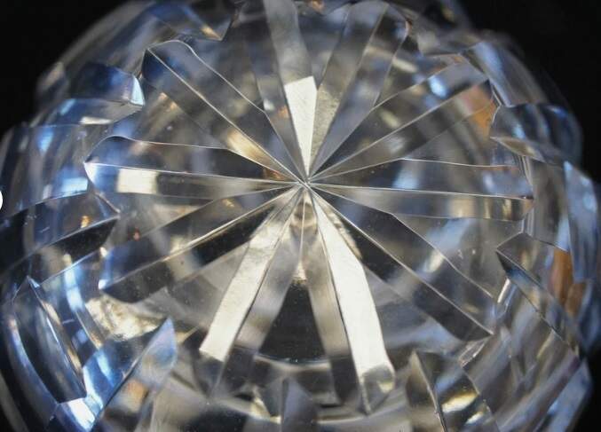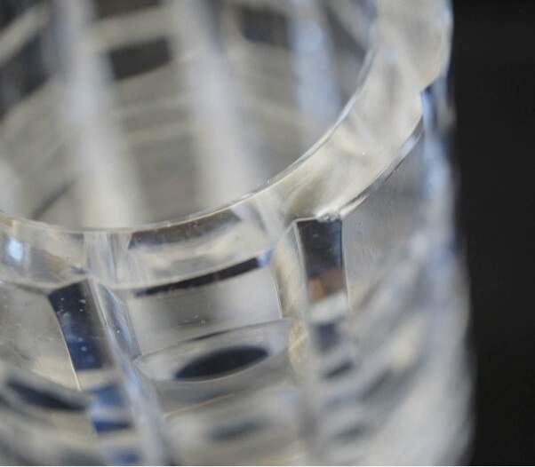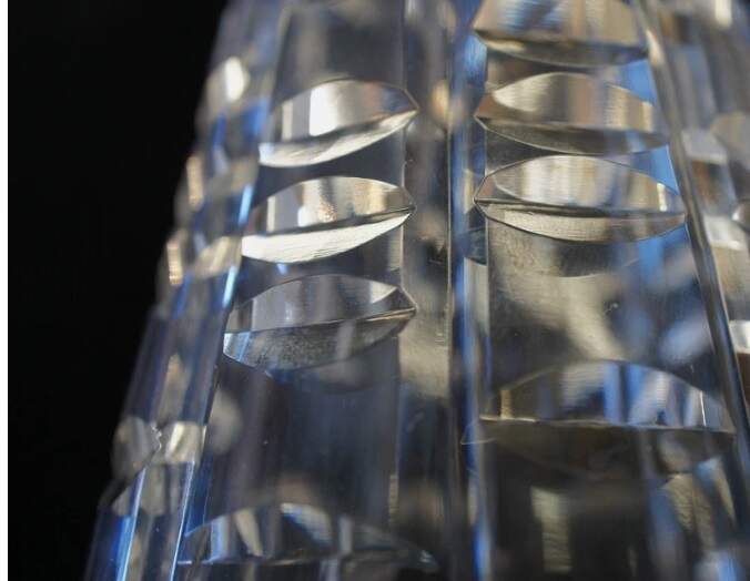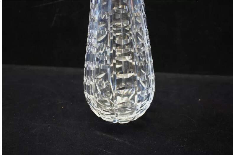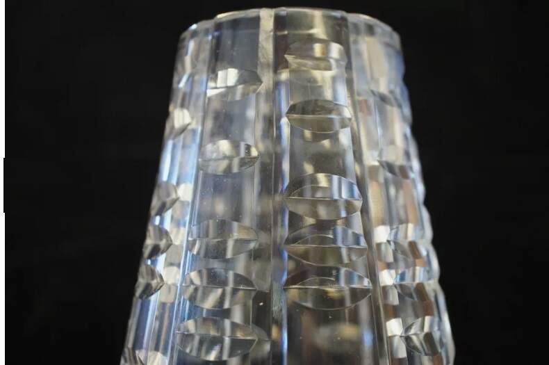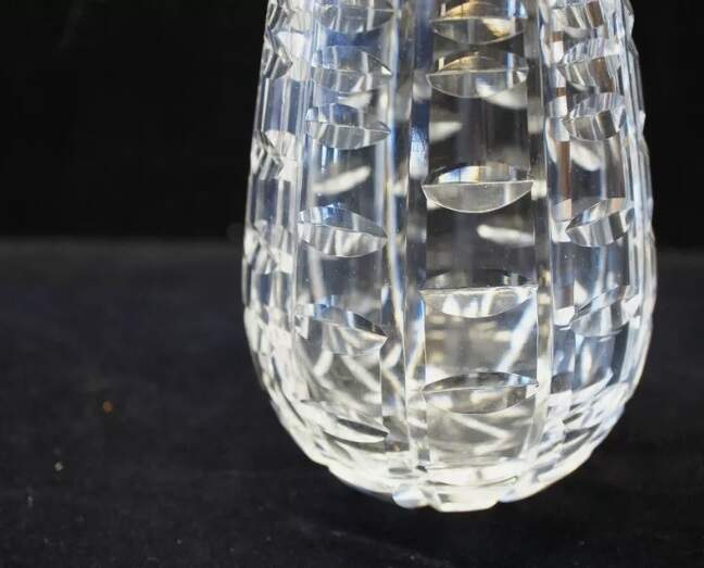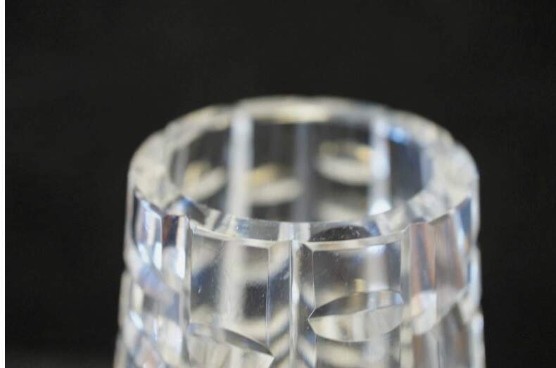 This is a beautiful piece of crystal. It has a lovely art deco look to it and it is notched down the sides. This is a lovely piece and it would make a wonderful addition to your home or collection.