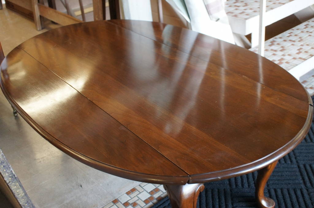 Vintage Drop Leaf Oval Coffee Table Solid Wood Cabriole Legs Queen Anne Style