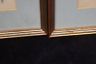 These pieces have some toning to the paper. The frames have some minor scuffing and paint to them. The matting also has a water mark on one of them.