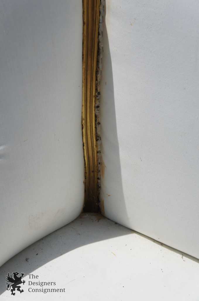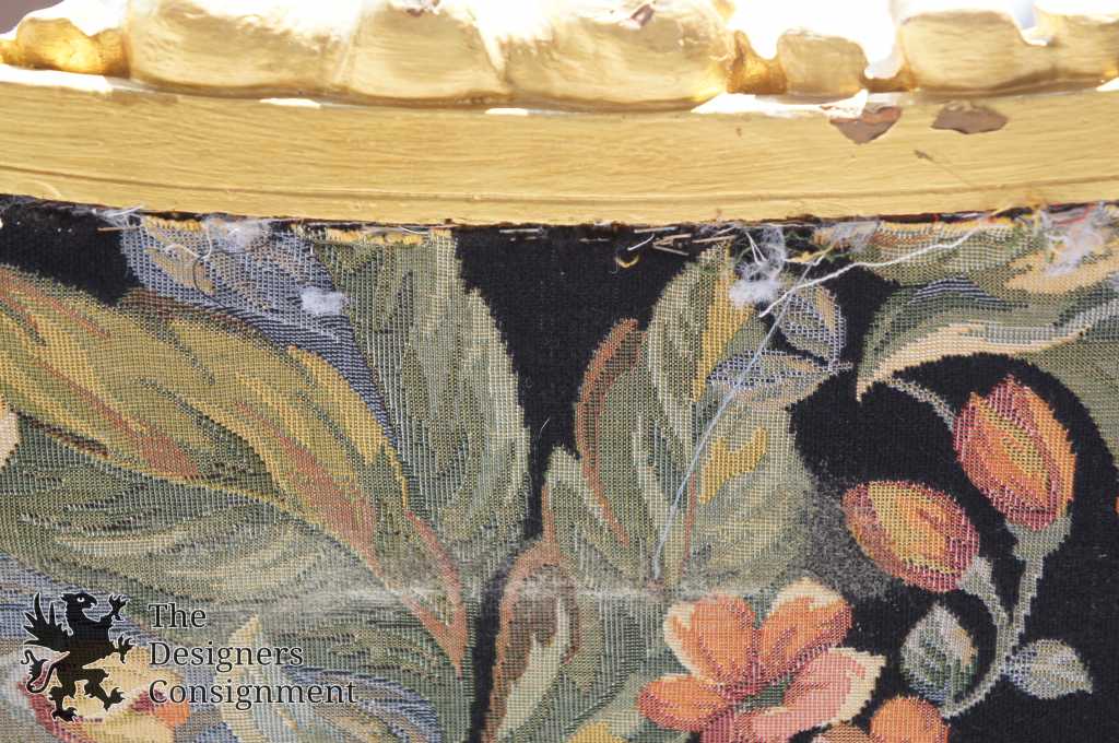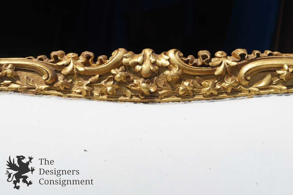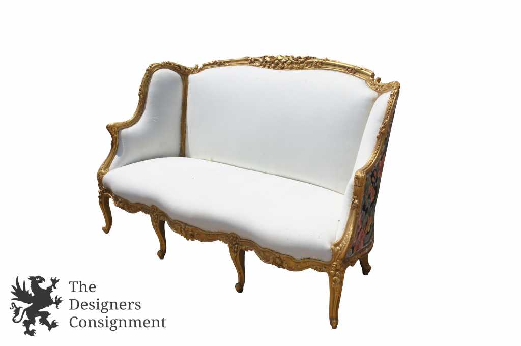 Beautiful 19th century giltwood rococo settee. Elegantly carved with intricate flourishes. Upholstered in white along the front, and floral on the back.