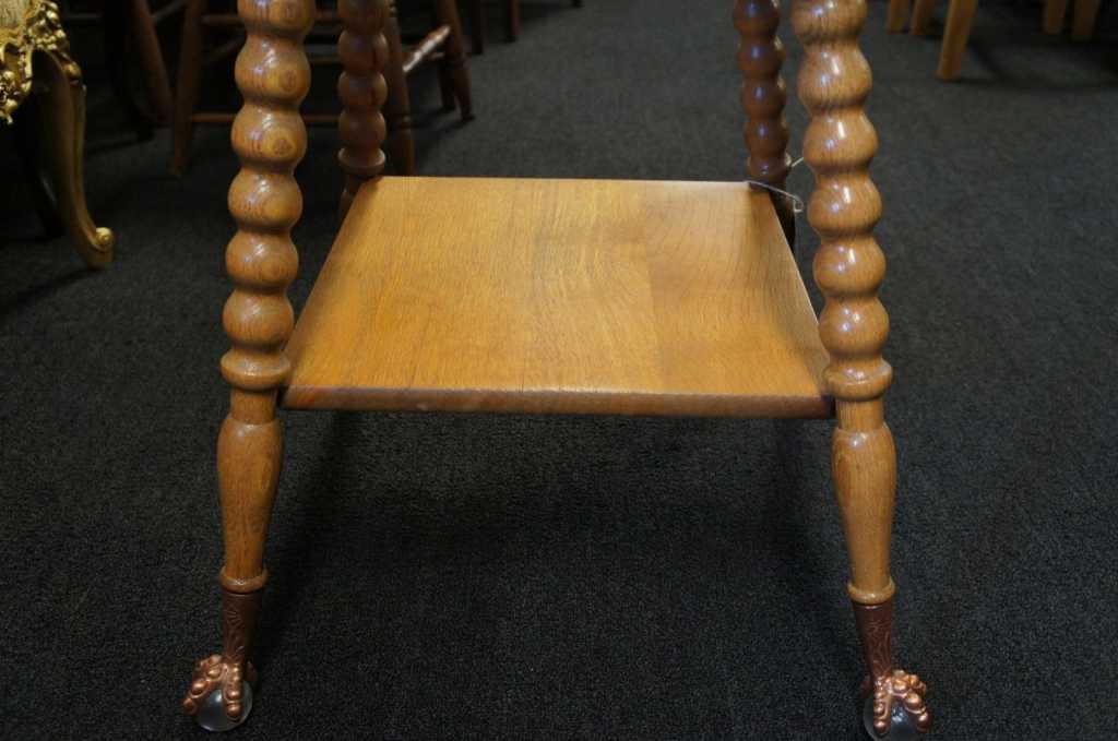 Here is a beautiful ball and copper claw foot table. Made from Oak, and intricate design. Will look great in any parlor or home!