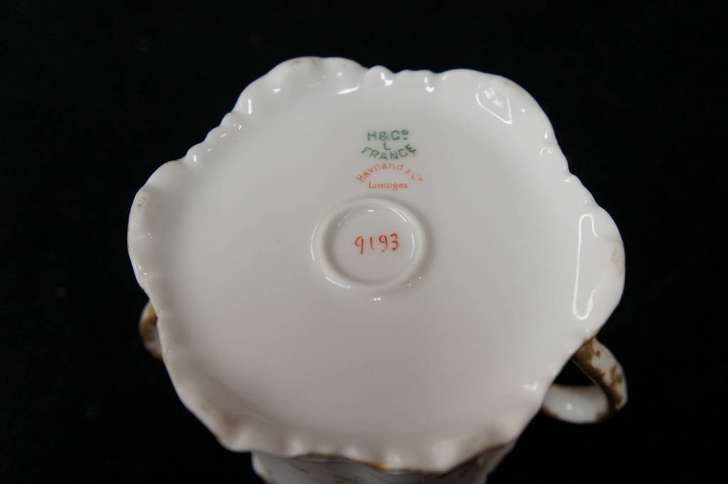 This is a beautiful piece from Haviland & Co. It is a floral Sugar Bowl with a lid and it features a lovely gold trim to it. This is a beautiful piece and it would make a wonderful addition to your home or collection.