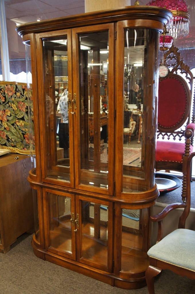 Unique Pulaski Curio Cabinet Rounded Glass Sides China Display Case Curved Bowed