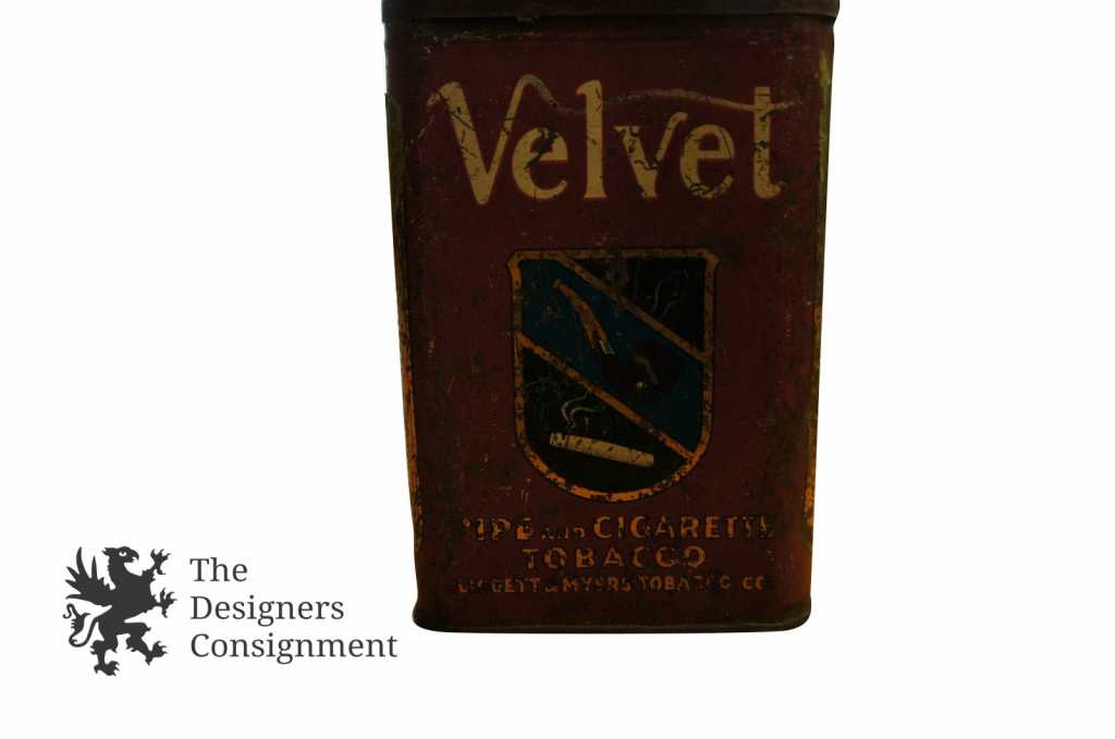 This is a really cool piece of Tobacciana. It is a Velvet pipe & cigarette tobacco tin with a 1910 tax stamp. Velvet Tobacco was made by the Liggett & Myers Tobacco Company which is the 4th largest tobacco company in the country and the company that originally made L&M cigarettes.