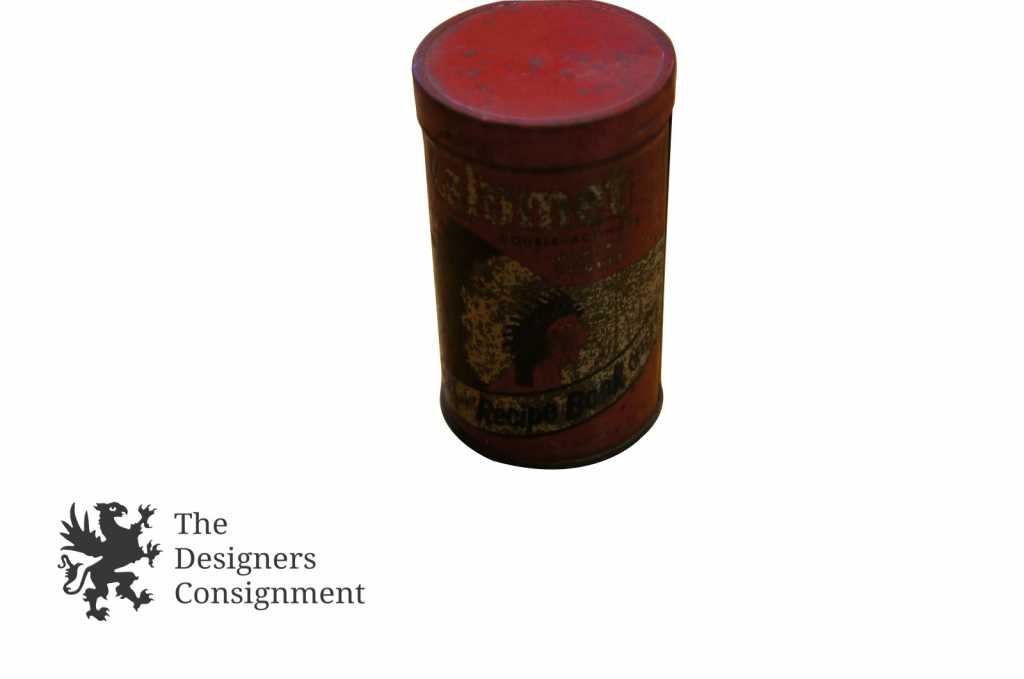 This is a very cool piece from General Foods. It is a tin for Calumet Double Acting Baking Powder it depicts a native american chief on it. This is a very cool piece of advertising and it would make a wonderful addition to your home or collection