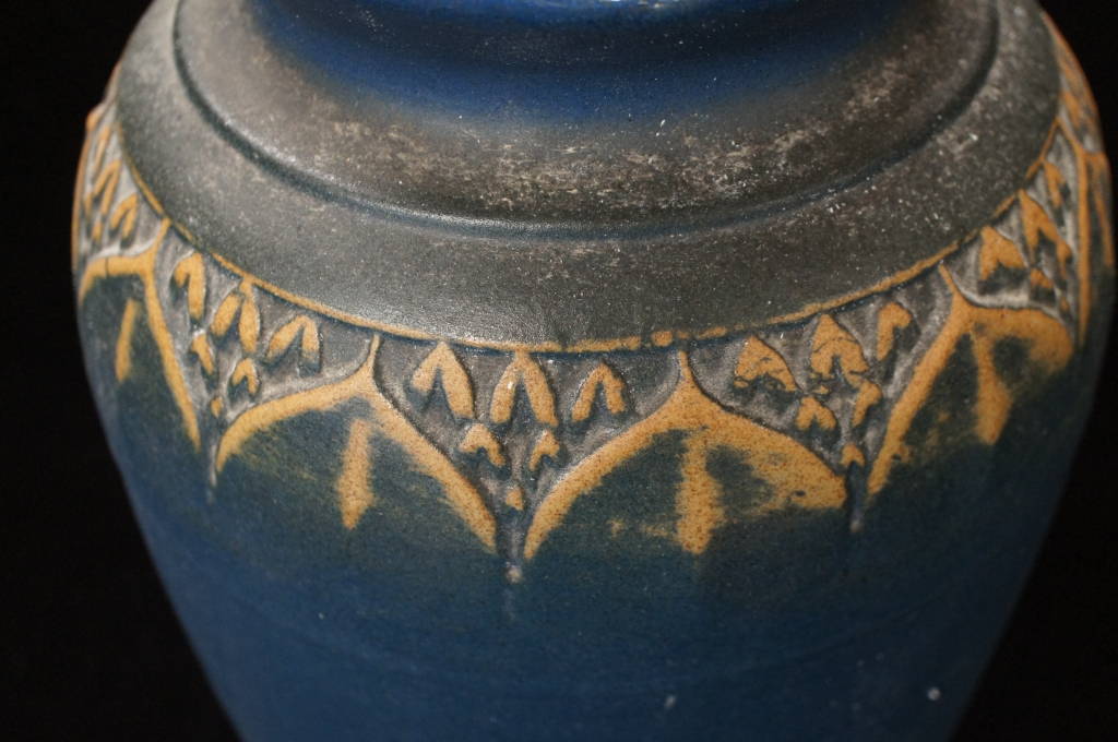 Antique Tall Western Stoneware Arts Crafts Arrowroot Vase Blue Monmouth Illinois