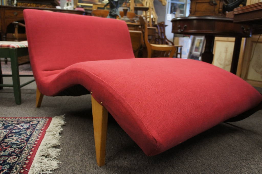 Mid Century Modern Red Swoop Chaise Lounge Chair Couch Tongue Shape Eames Era