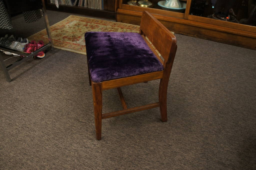 Vintage Upholstered Purple Velvet Piano Bench Window Seat Vanity Stool Chair