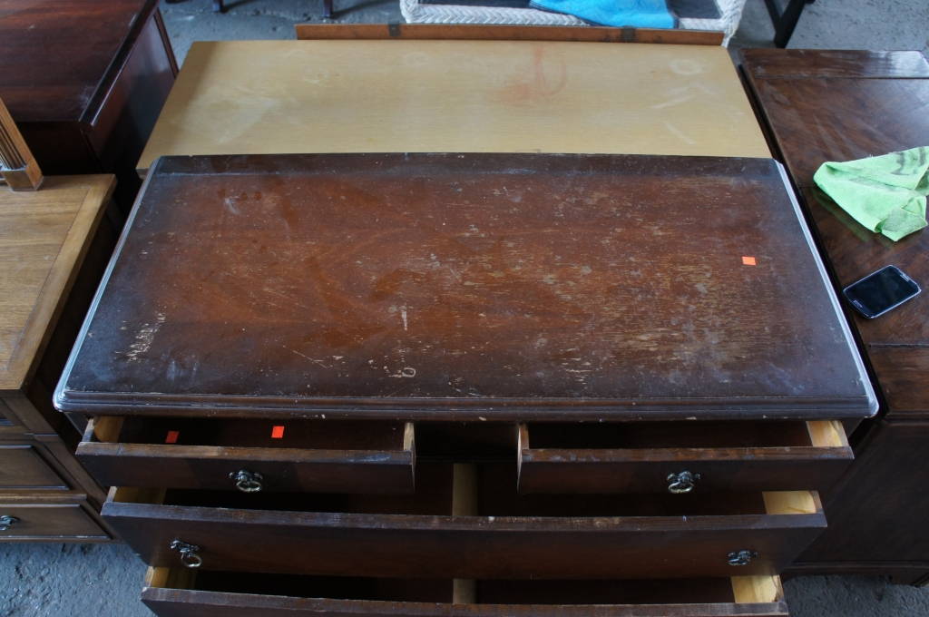 1 Solid Vintage Antique Dark Maple Wood Parquetry 4 Drawer Dresser Chest