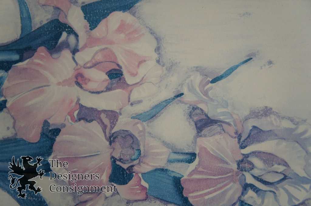 Pair of White Plaster Pastel Floral Paintings Iris and Rose Carol Robinson