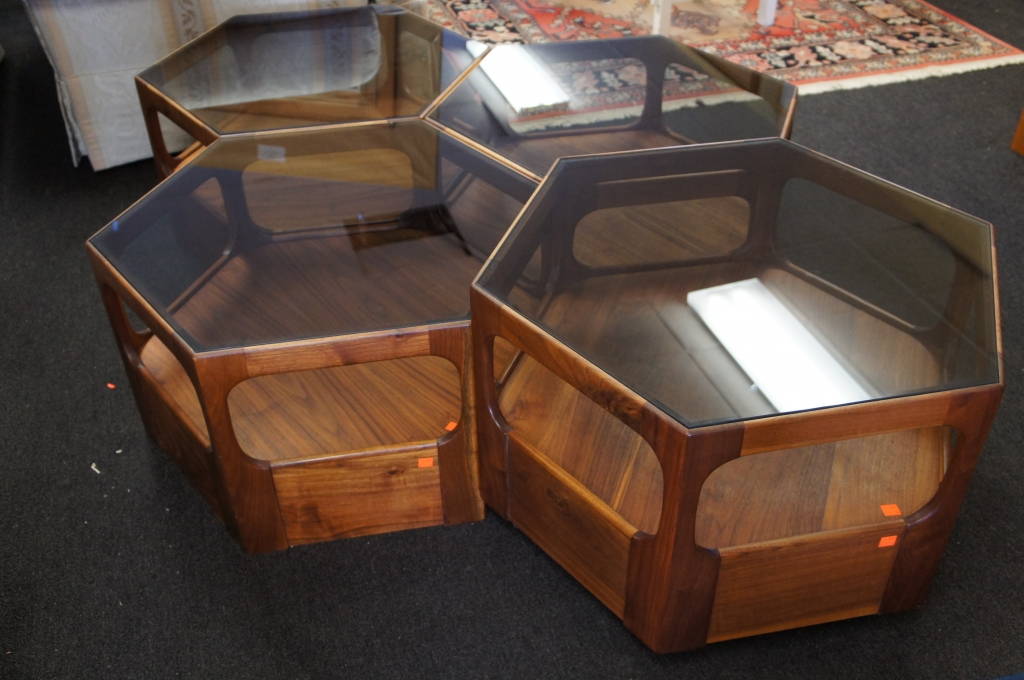 4 Hexagonal Coffee Tables Walnut Mid Century Modern John Keal for Brown-Saltman