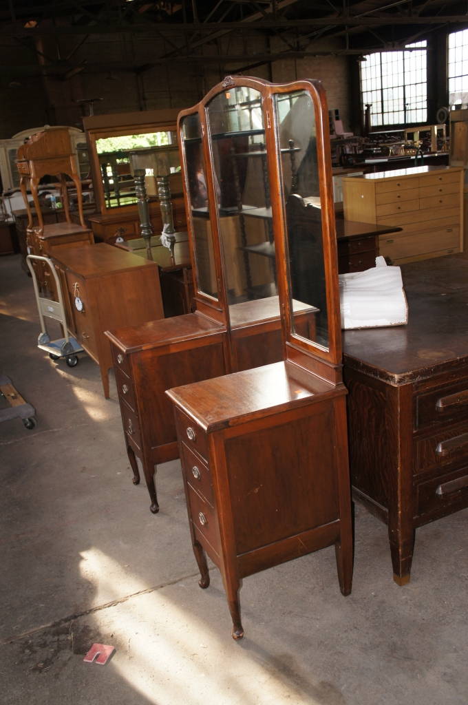 Tall Antique Traditional Queen Anne Trifold Vanity Silver Mirror Early 40s