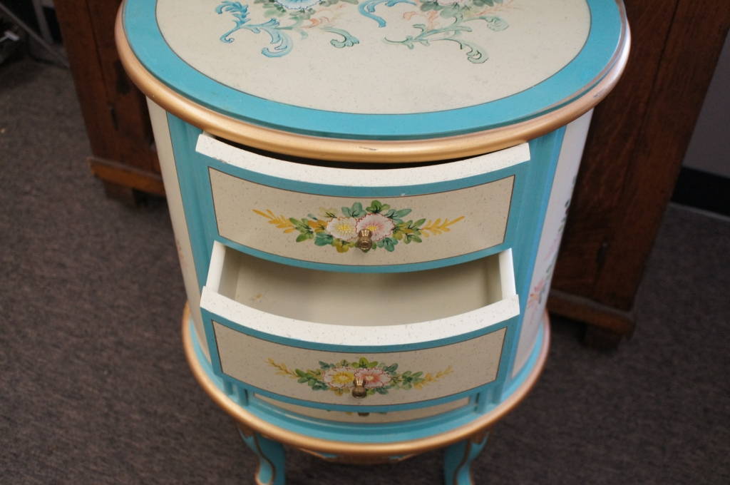 1 Gorgeous Round Wooden Floral Design 4 Drawer Legged Nightstand End Table Chic