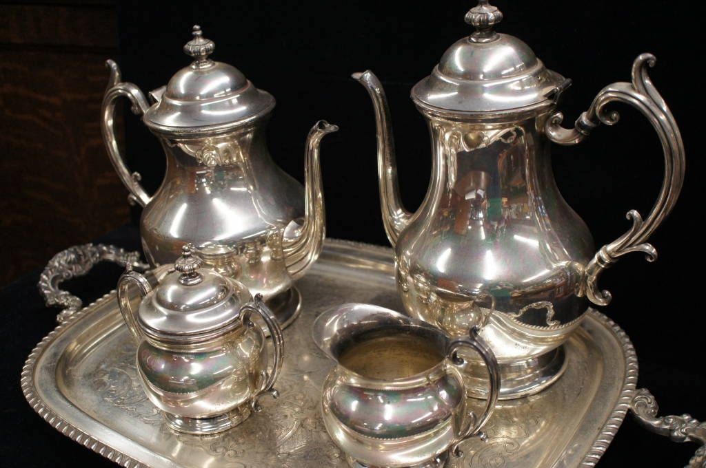 5 Unique Silverplated SRS Coffee Tea Set Service Tray Ginger Jar Creamer & Pots, WOULD RETURN OR DONATE