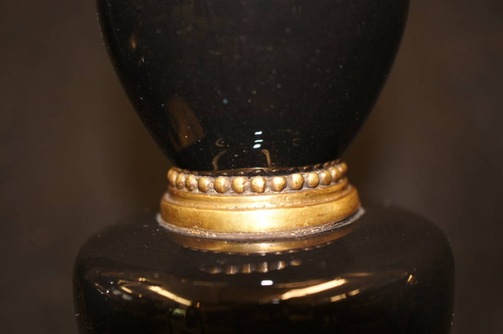 Ornate Onyx Black Glass & Brass Candlesticks Very Large And Beautiful Pair