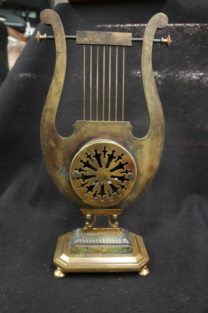 Beautiful Vintage Neiman Marcus Brass Harp Clock Large