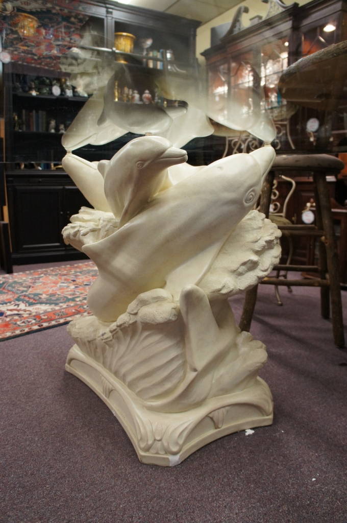 4 Swimming Dolphins Pedestal Table Rectangular 72" Beveled Glass Top Unique Base