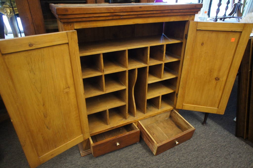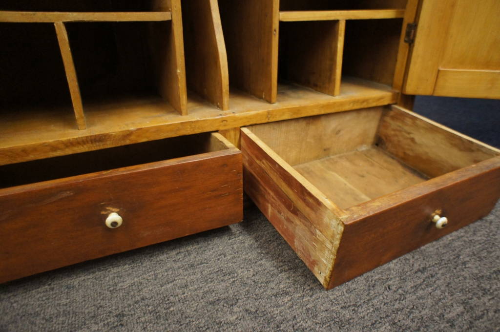 Antique Rustic Cabinet Oak Porcelain Hardware Drawers Storage Filing Country