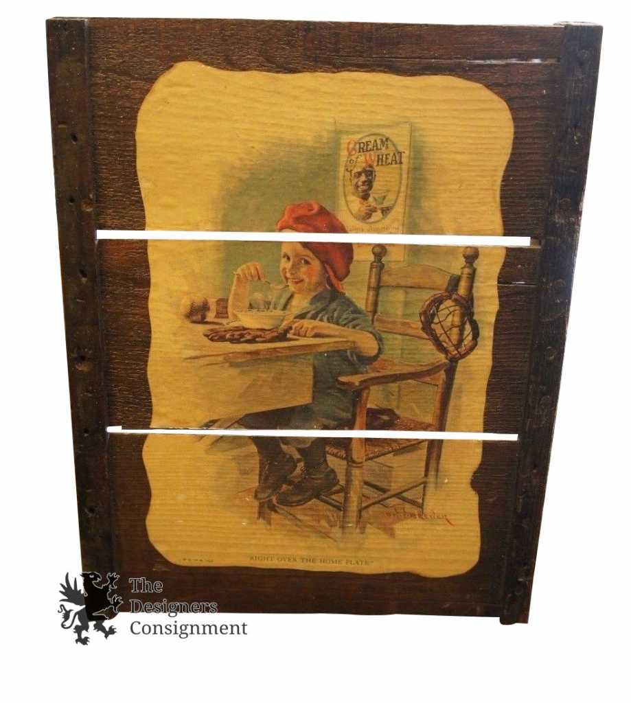 Here is a fun collectible Cream of Wheat advertising sign. This piece is titled "Right Over The Home Plate". The artist reads EDW. J. Brewer. A wonderful display piece for any home