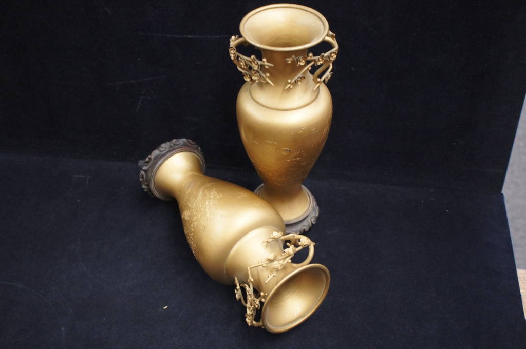 Pair Of 2 Beautiful Art Nouveau Etched Vases Coy Fish Flowers Man On A Frog