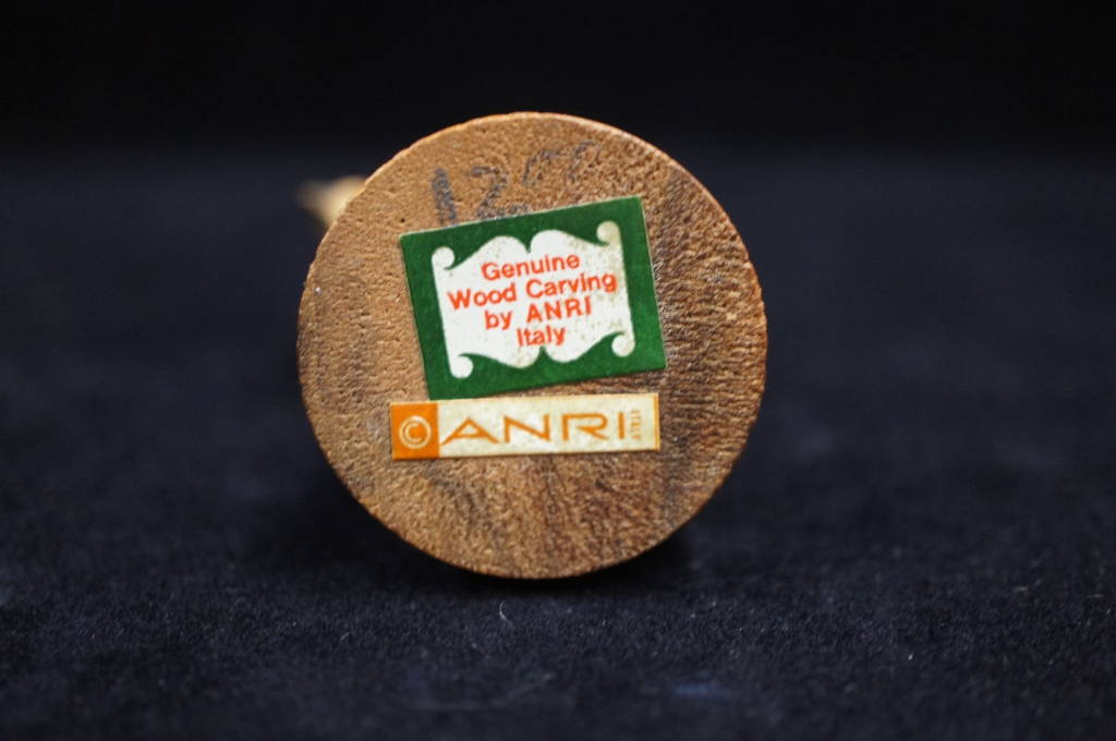 1 Anri Wood Carved Wren Bird Flower Figurine Statue 2.5" Tall Made In Italy