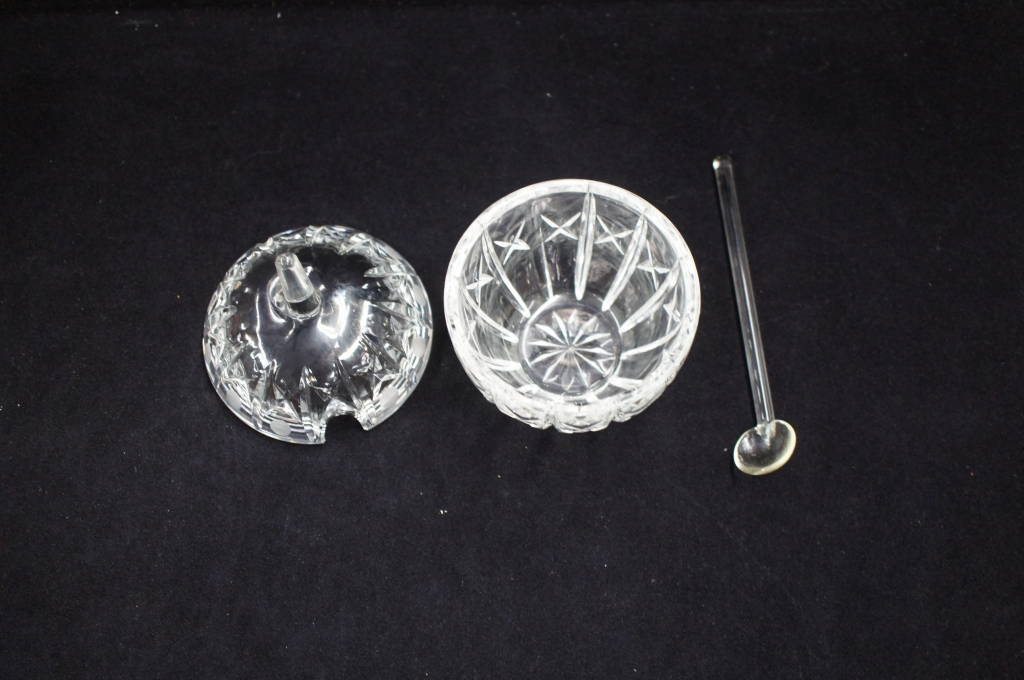 1 Beautiful Very Rare Apple Shaped Crystal Lidded Sugar Bowl w/ Spoon Deep Cuts