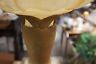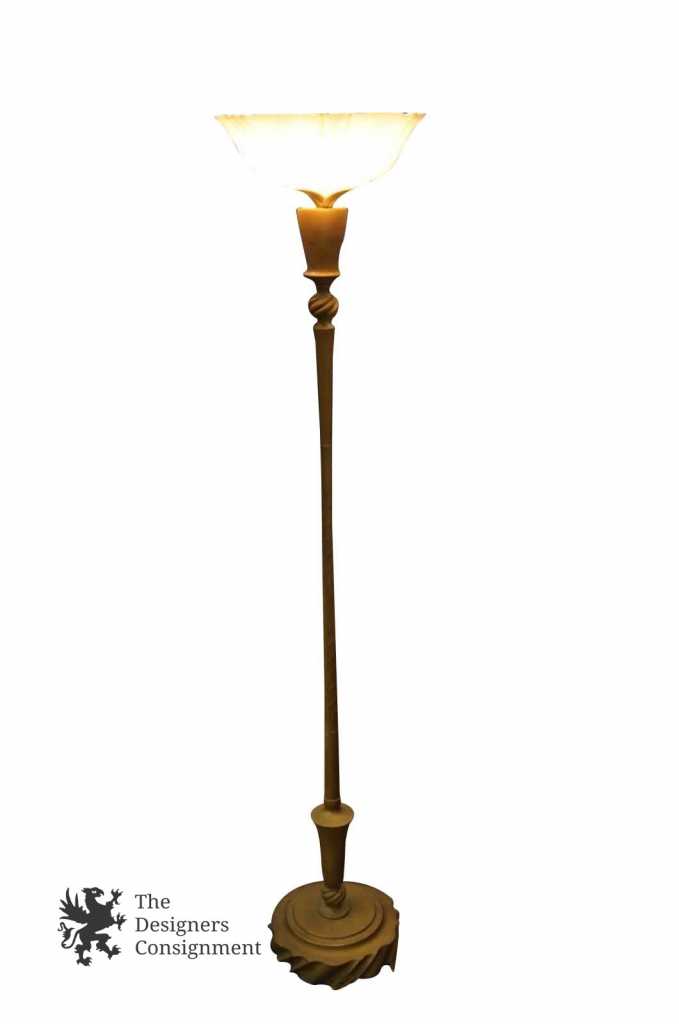 Here is a beautiful Art Nouveau Standing floor lamp. The stem is turned as well as the base and ball accents. The top is opaque butterscotch slag glass. An amazing mid century piece. Very Heavy. Perfect for any home.