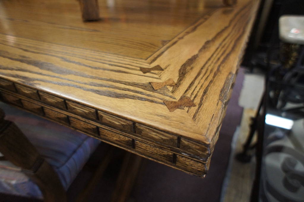 Vintage Romweber Viking Oak Dinner Table & 6 Chairs Set Arm Side Trestle Nordic