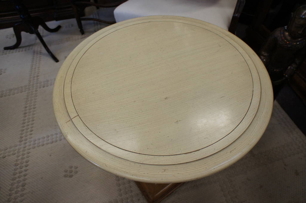 Pavane by Tomlinson Round Coffee Table White Painted Wood Top Pedestal Base Low