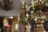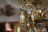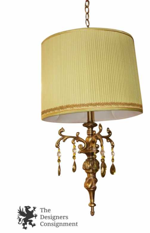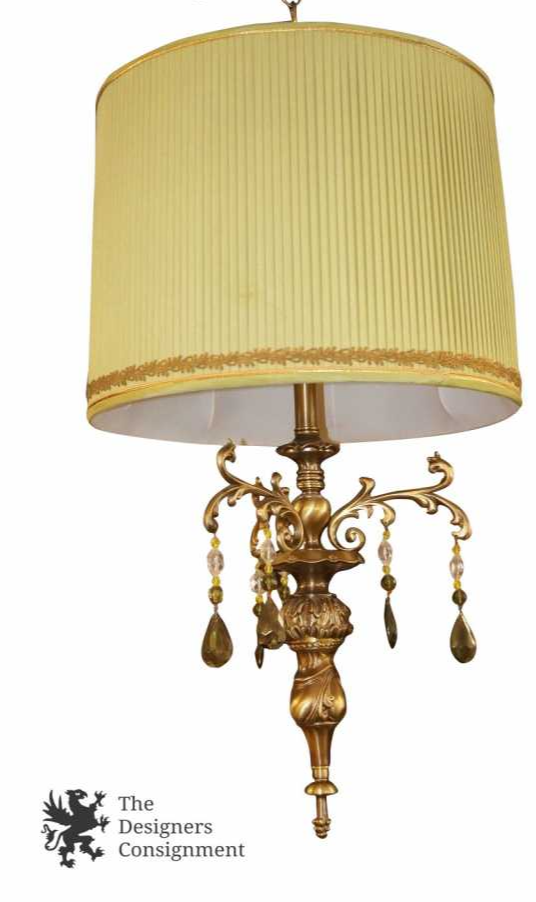 This is a beautiful retro swag light fixture. Oiled brass with green and clear prisms. A great look for any home.
