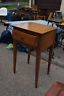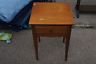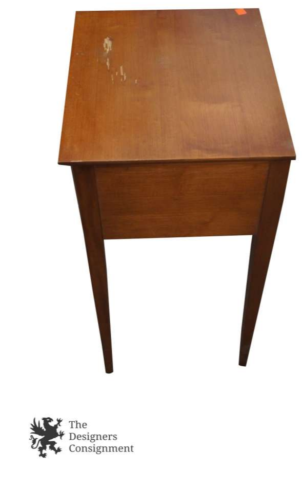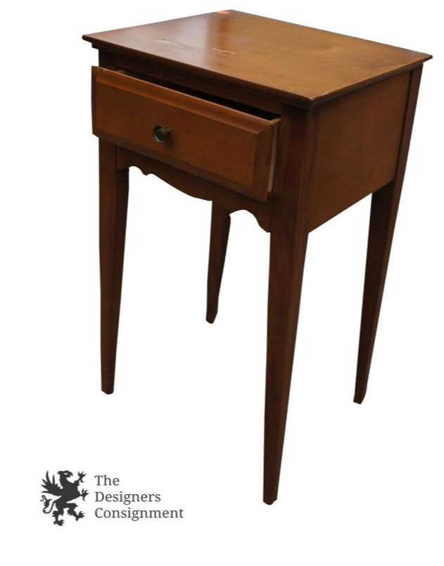Here is a lovely bedroom nightstand. Features a single drawer with a round brass pull. A fine addition to your home