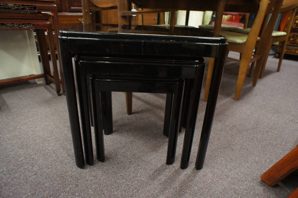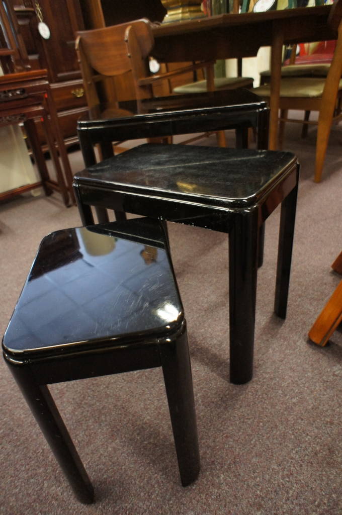 3 Black Lacquer Nesting Tables Powell Small Medium Large Vintage Modern Style