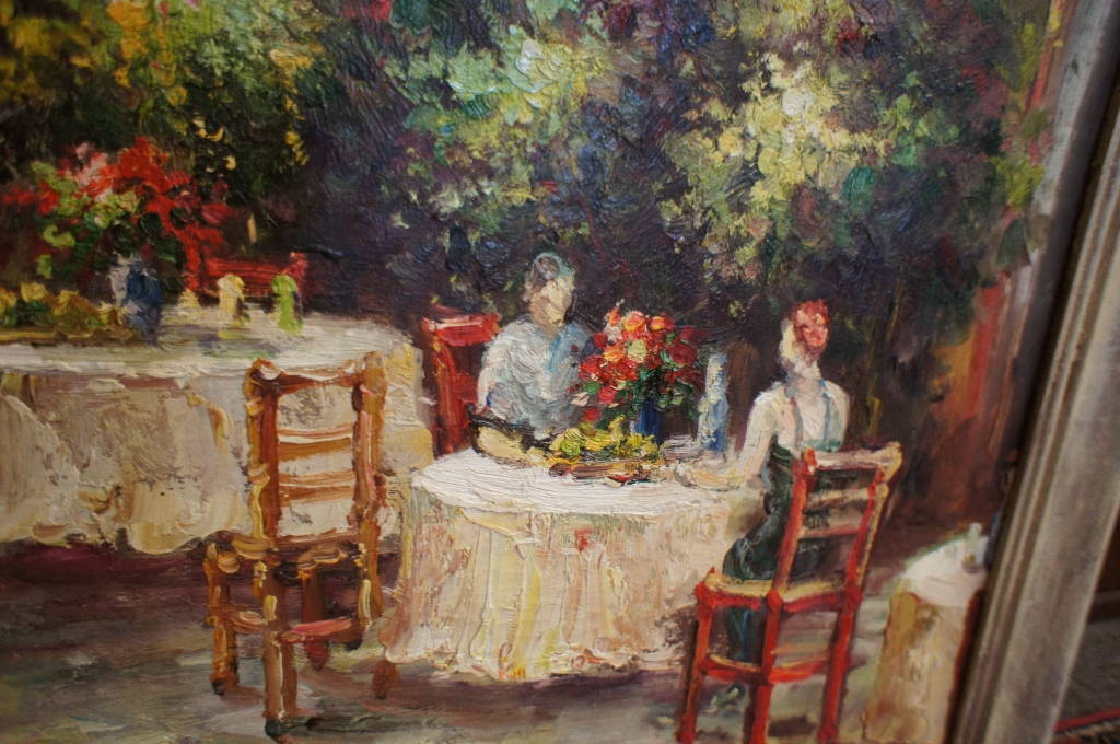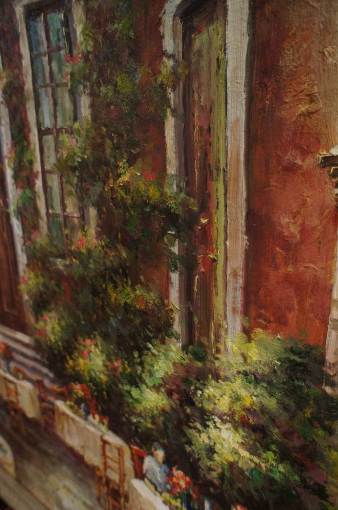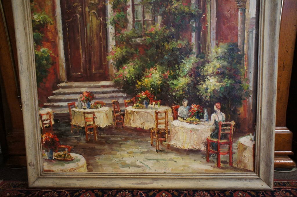 Original Oil Painting Outdoor Bistro Restaurant Scene Impressionist Canvas Frame