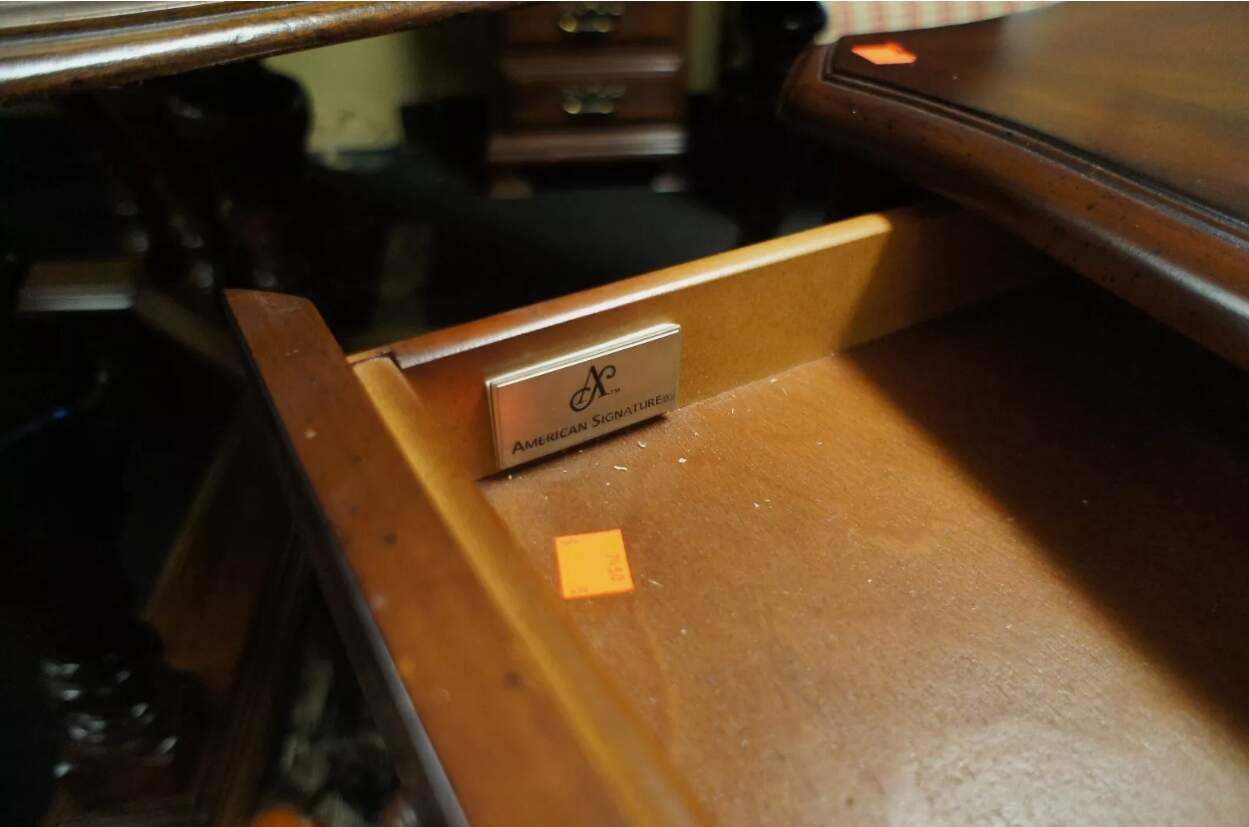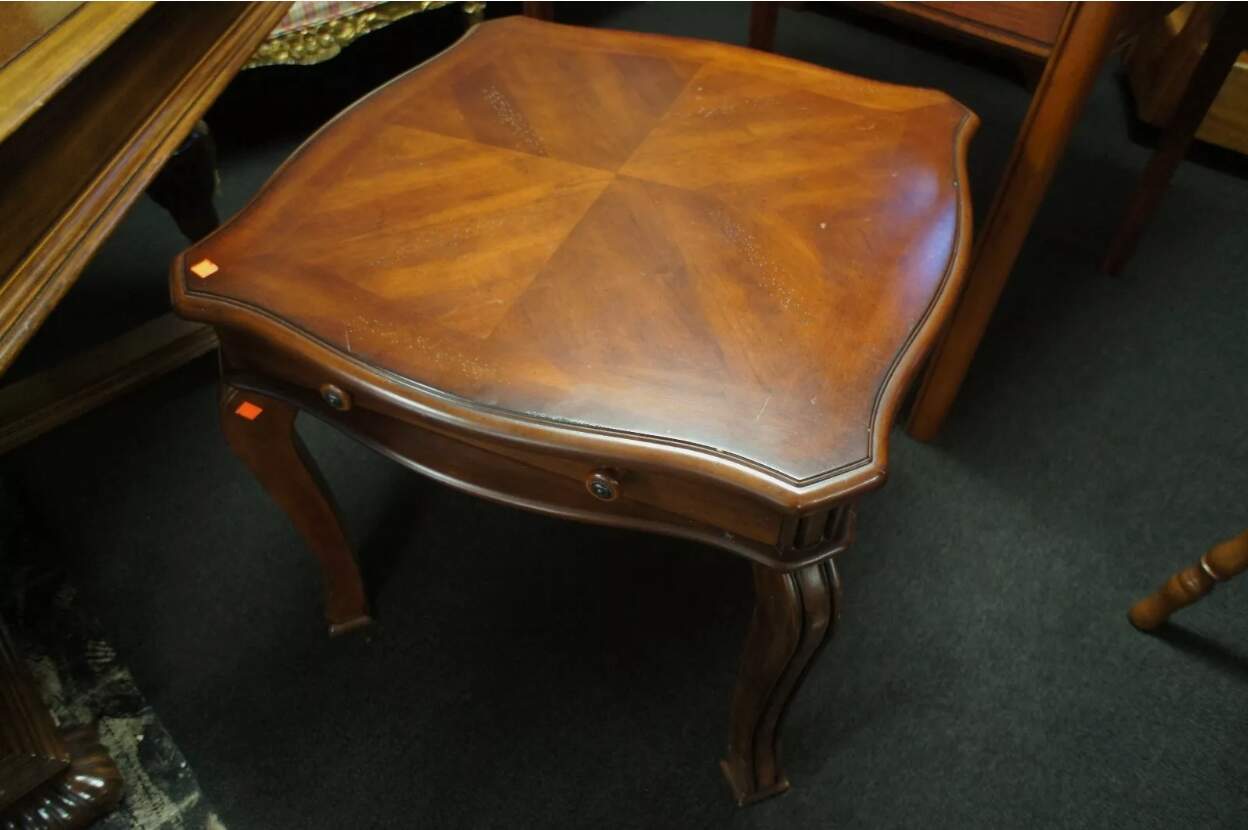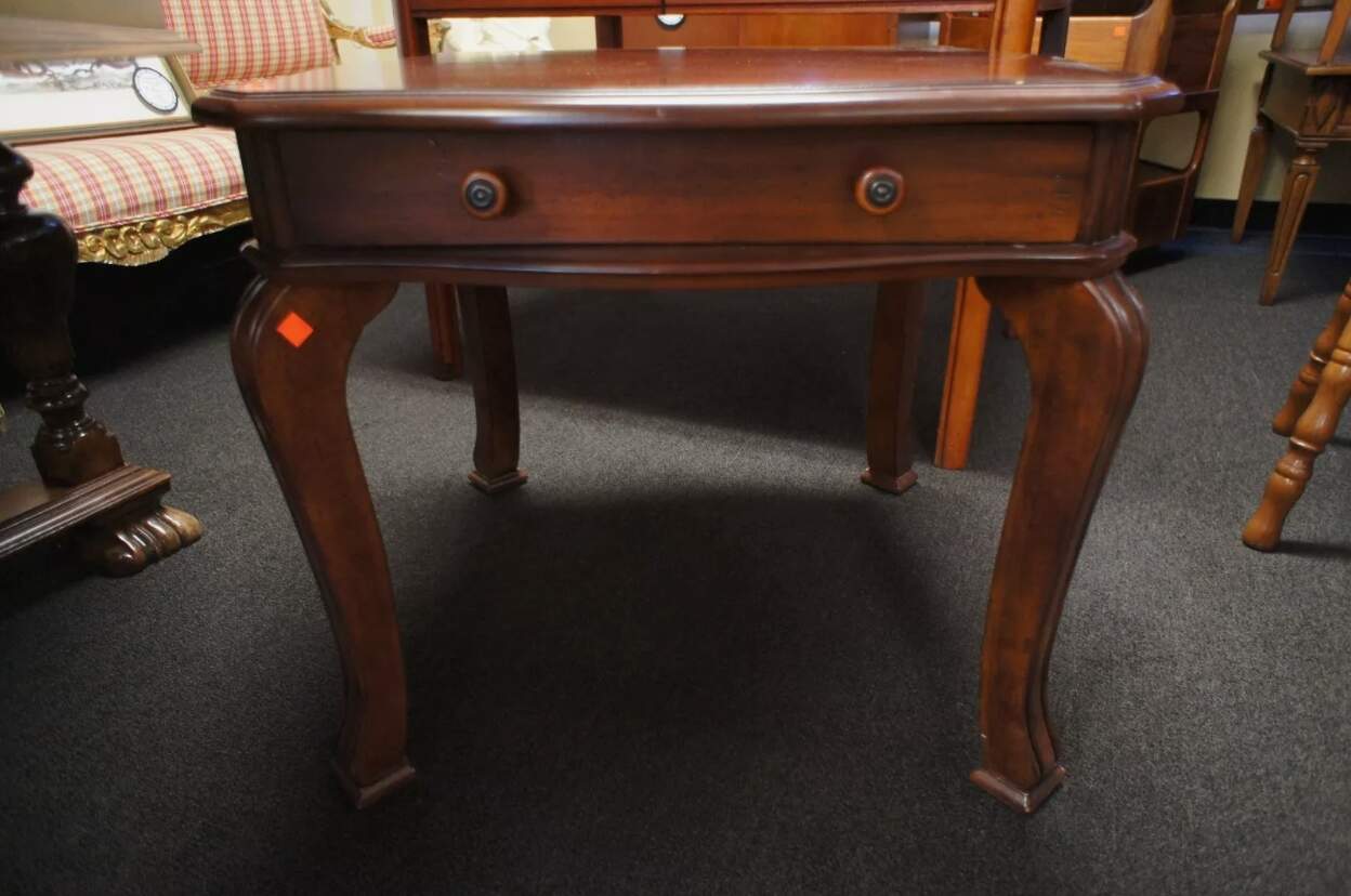 American Signature Table. This small table features one drawer on the front, and French style cabriole legs.