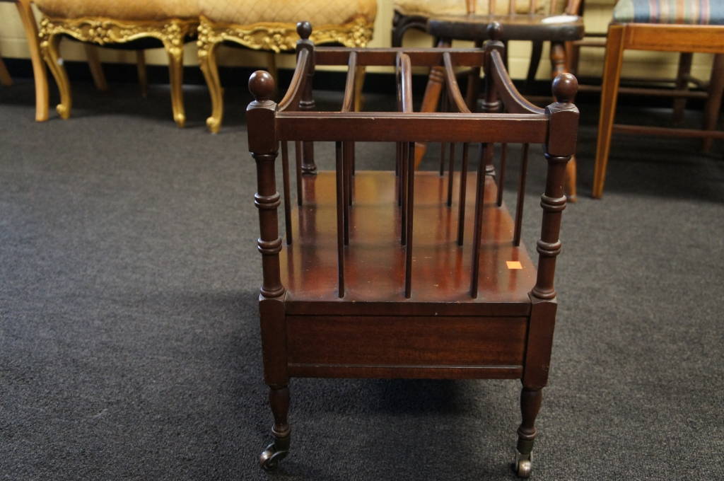 Unique 1950s Solid Genuine Mahogany Handled Magazine Newspaper Rack Casters Vtg