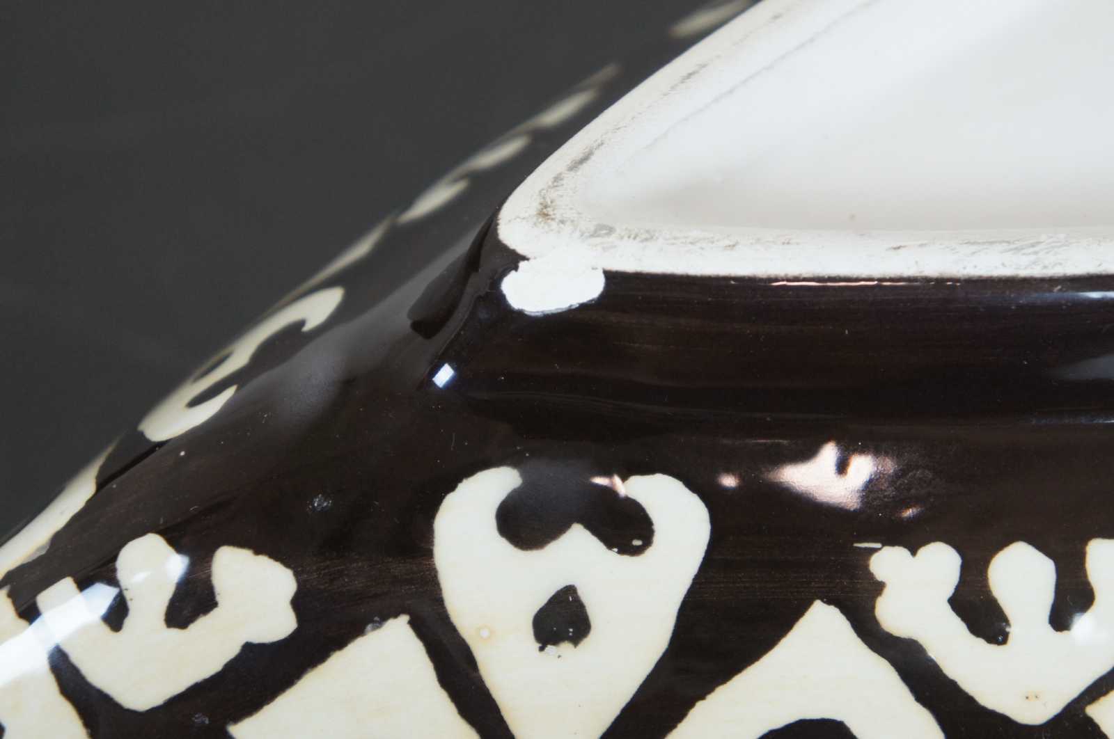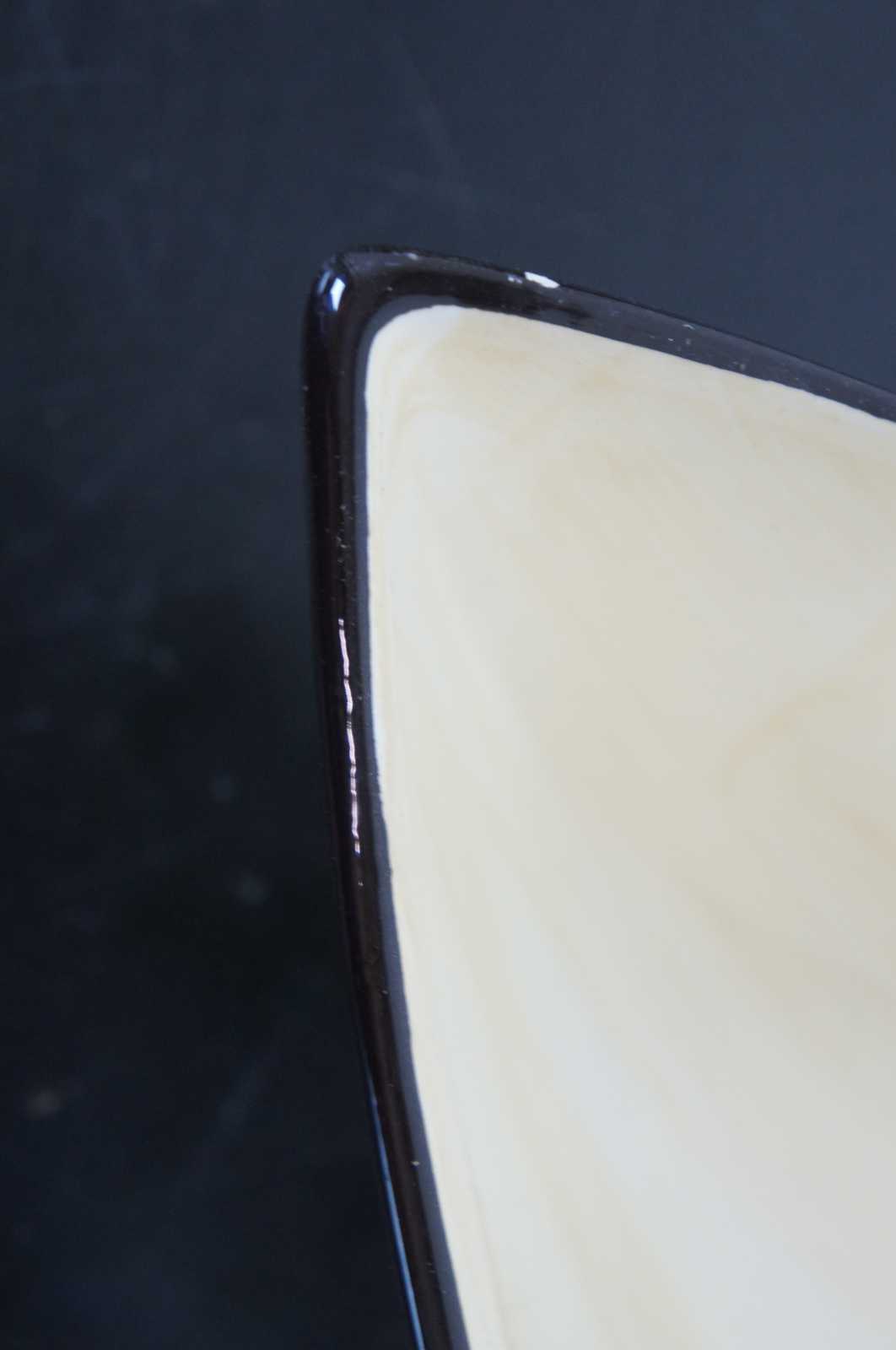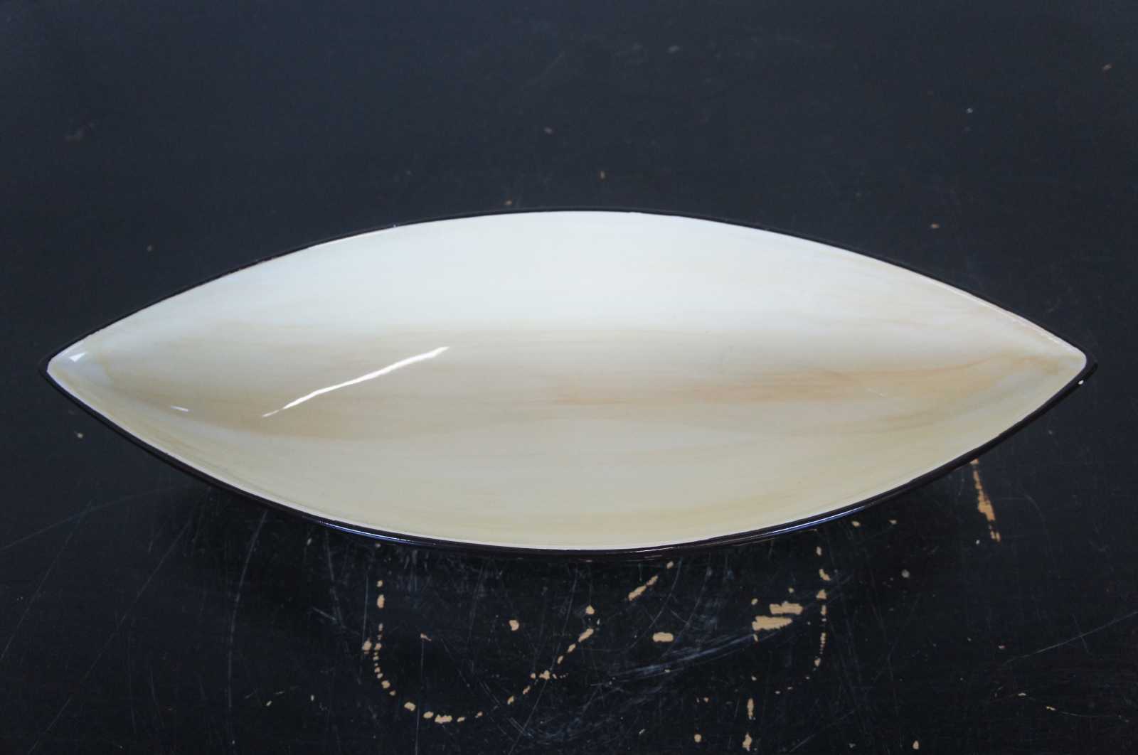 Almond/oblong shaped serving dish by Antica Fornace Italy featuring a brown and white geometric pattern.