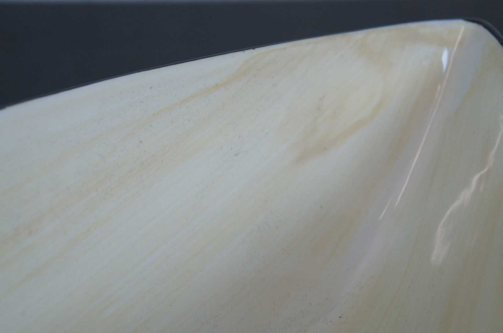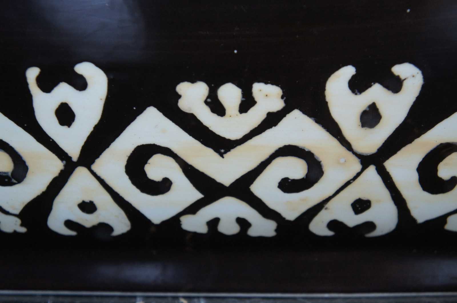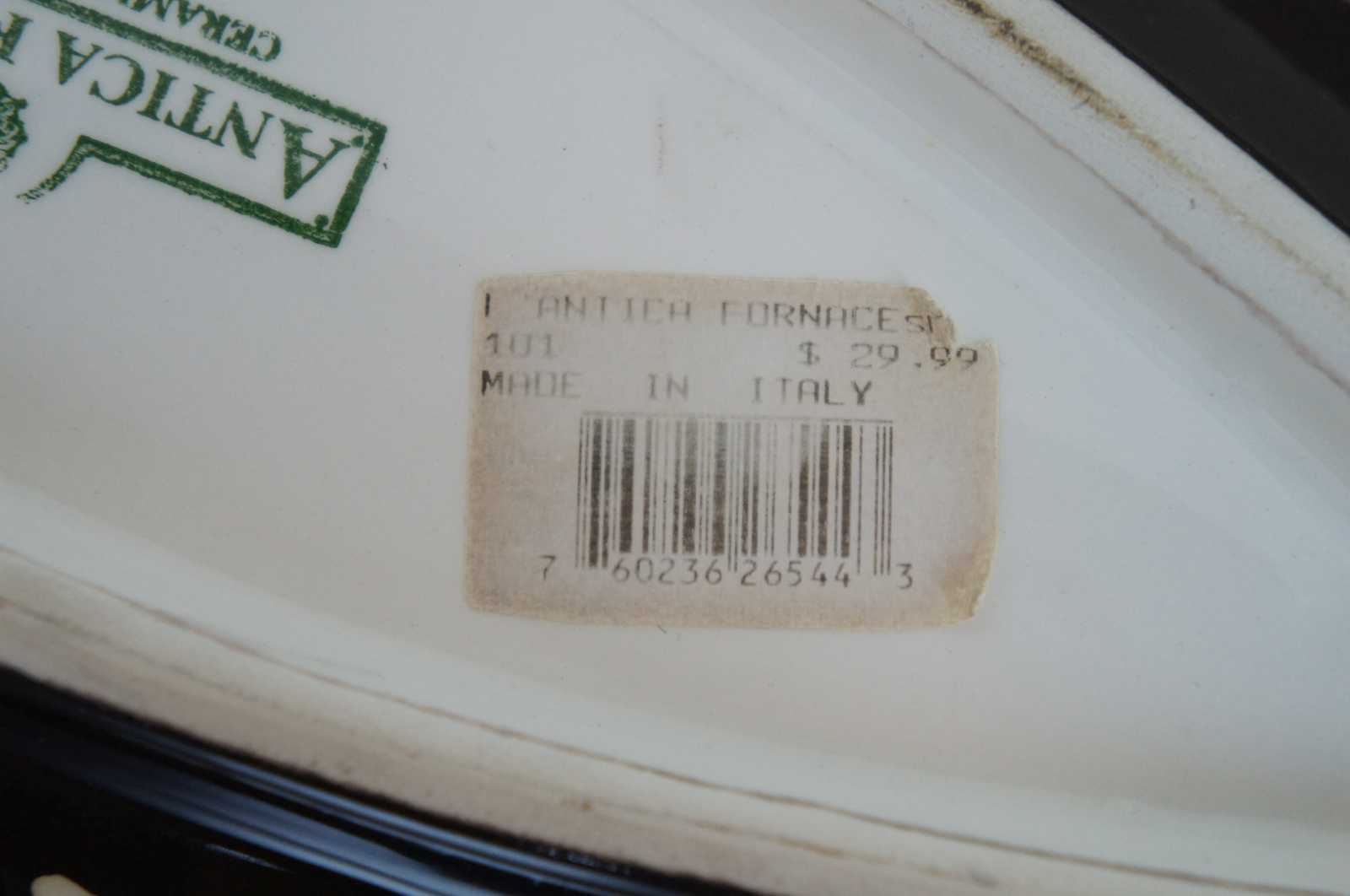 Almond/oblong shaped serving dish by Antica Fornace Italy featuring a brown and white geometric pattern.