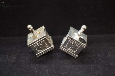 Pair Of 2 Godinger Silver Plated Hanukkah Salt & Pepper Shakers Dreidels w/ Box