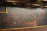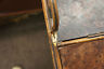 This piece has a very used look to it, some wear to the finish in spots, some minor damage to the piece itself, otherwise in excellent condition for it's age. The leather top is pealing loose in a few place, however this just lends a hand in the natural age of the piece. The back right leg is beginning to split as bamboo tends to do over time, and the connected stretcher is a little loose. This does not compromise the structural integrity of the piece and it is still very sturdy.