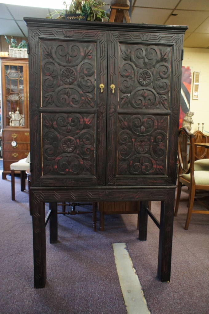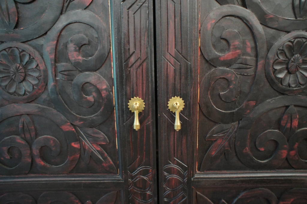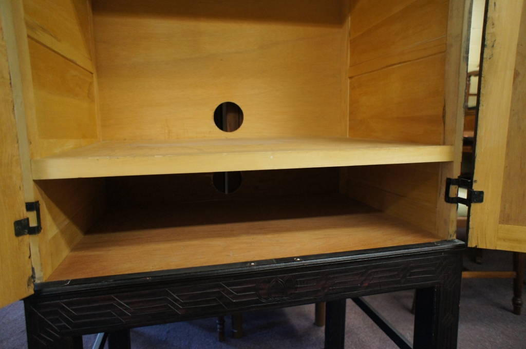 Nice Asian Style Carved TV Cabinet Entertainment Black Red Painted Doors Shelf