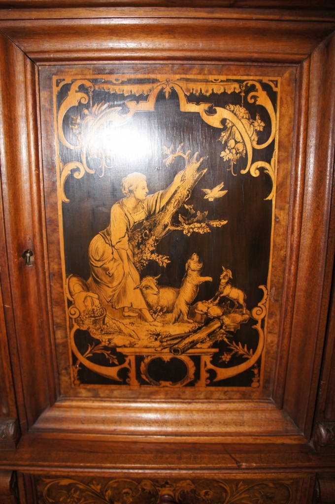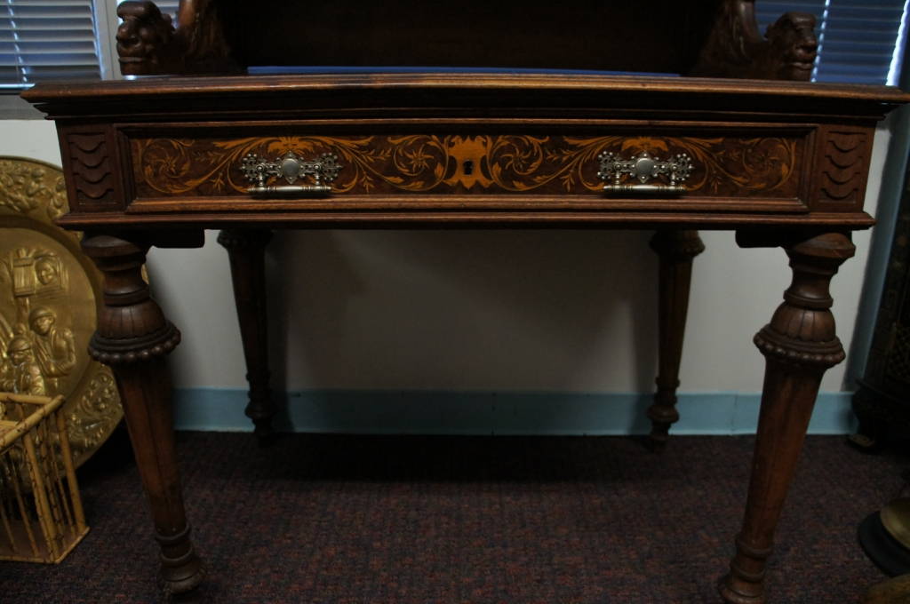 Rare Mid 1800s Hand Carved Renaissance Revival Desk & Hutch Swag Gilding Putti