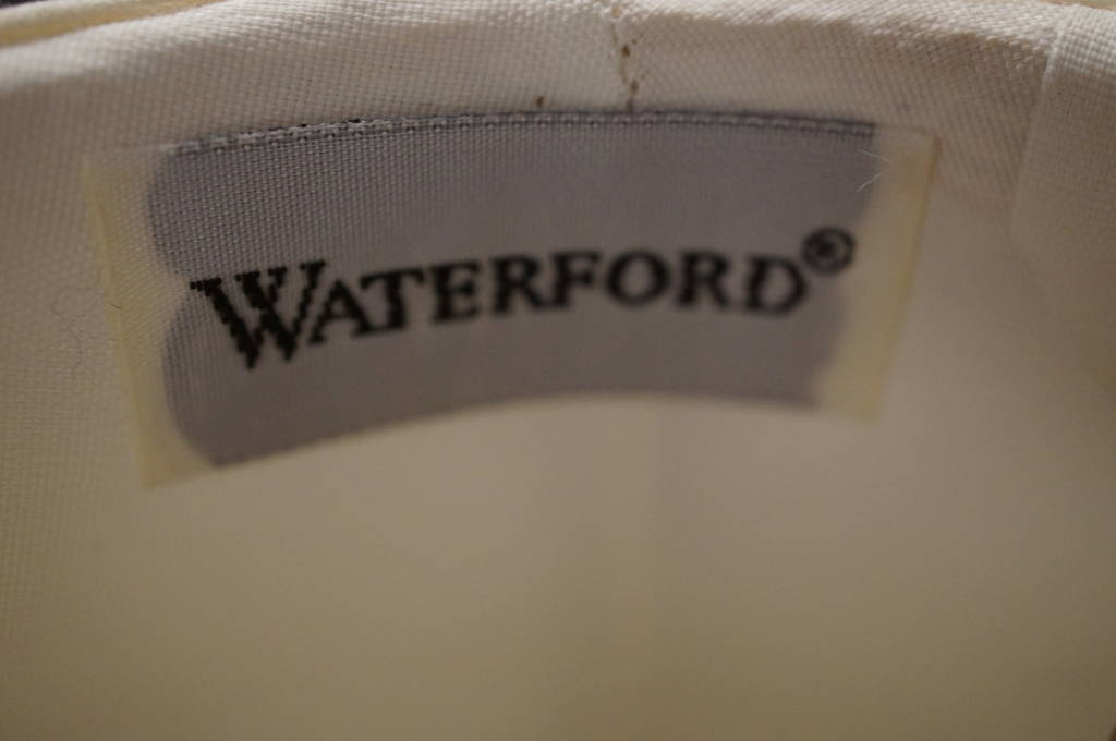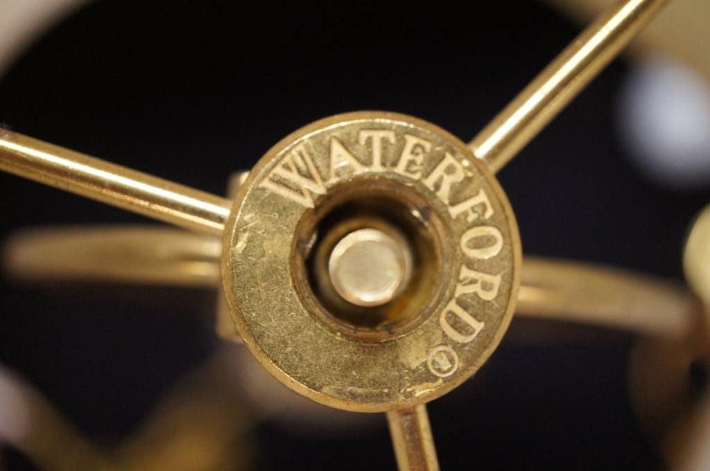 Ornate Pair Of Waterford Glass Lismore Crystal And Brass Lamps W/ White Shade