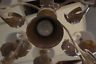 Here is a beautiful Iron Chandelier. This light features Acanthus leaves, Medal shades, and a downward facing spotlight. A great addition to any dining room.