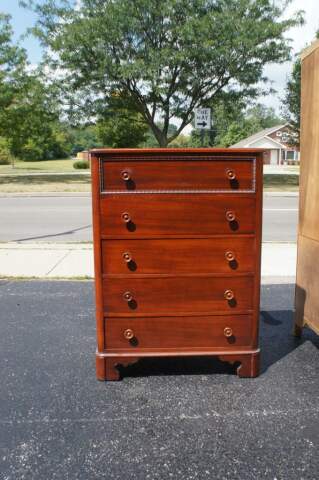 Beautiful Early American Mahogany Tall Boy Dresser W/ Uniquely Accented Drawers