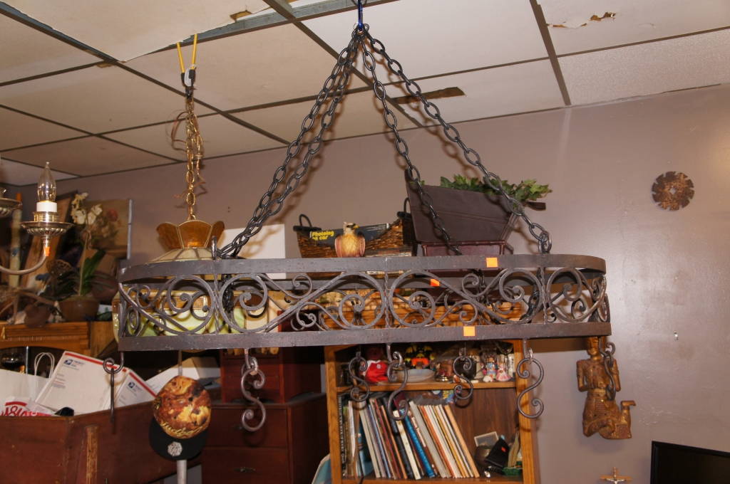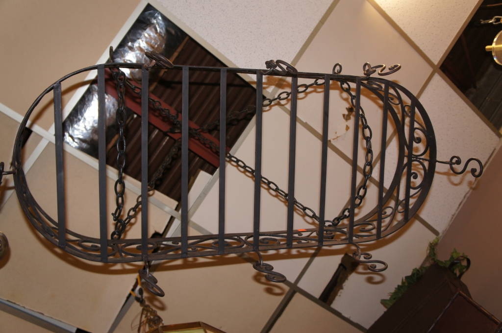 Antique Wrought Iron Hanging Pot And Utensil Rack Kitchen Organizer Heavy Chain