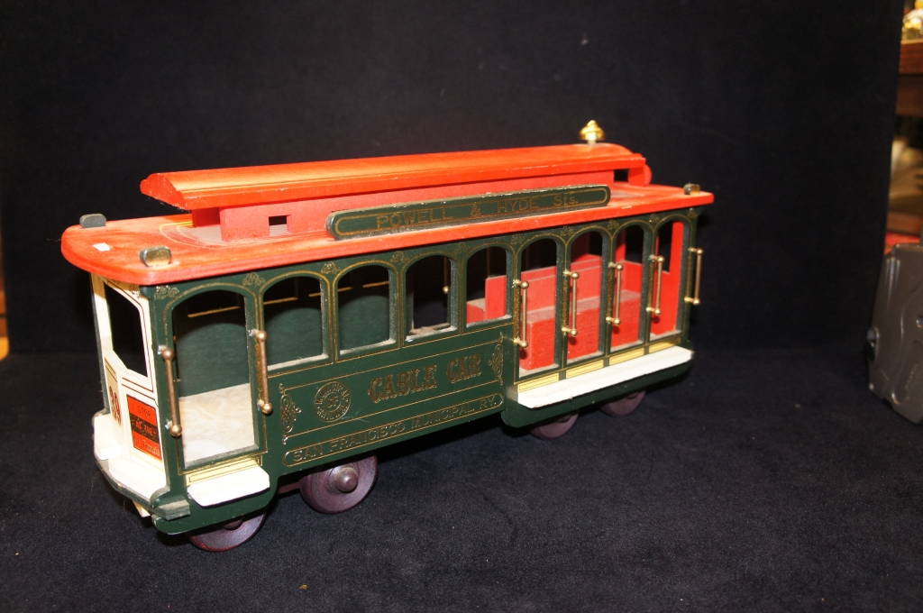 Vintage Hand Painted Powell & Hyde Cable Car Music Box Red Green W/ Gilding
