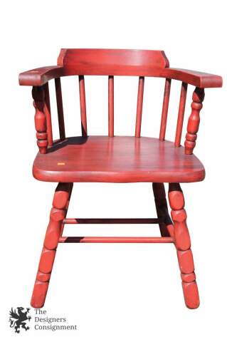 Vintage Wooden Arm Chair Red Painted Spindle Leg Low Back Country Primitive