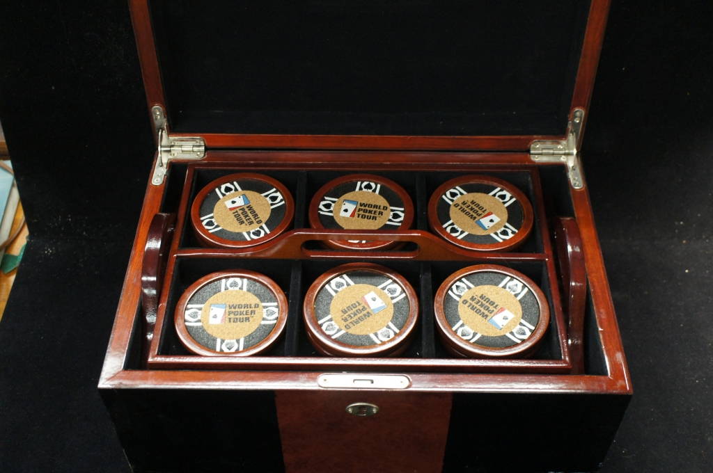 Amazing Casino World Poker Tour Poker Chip Set w/ Wood Handled Case & Coasters